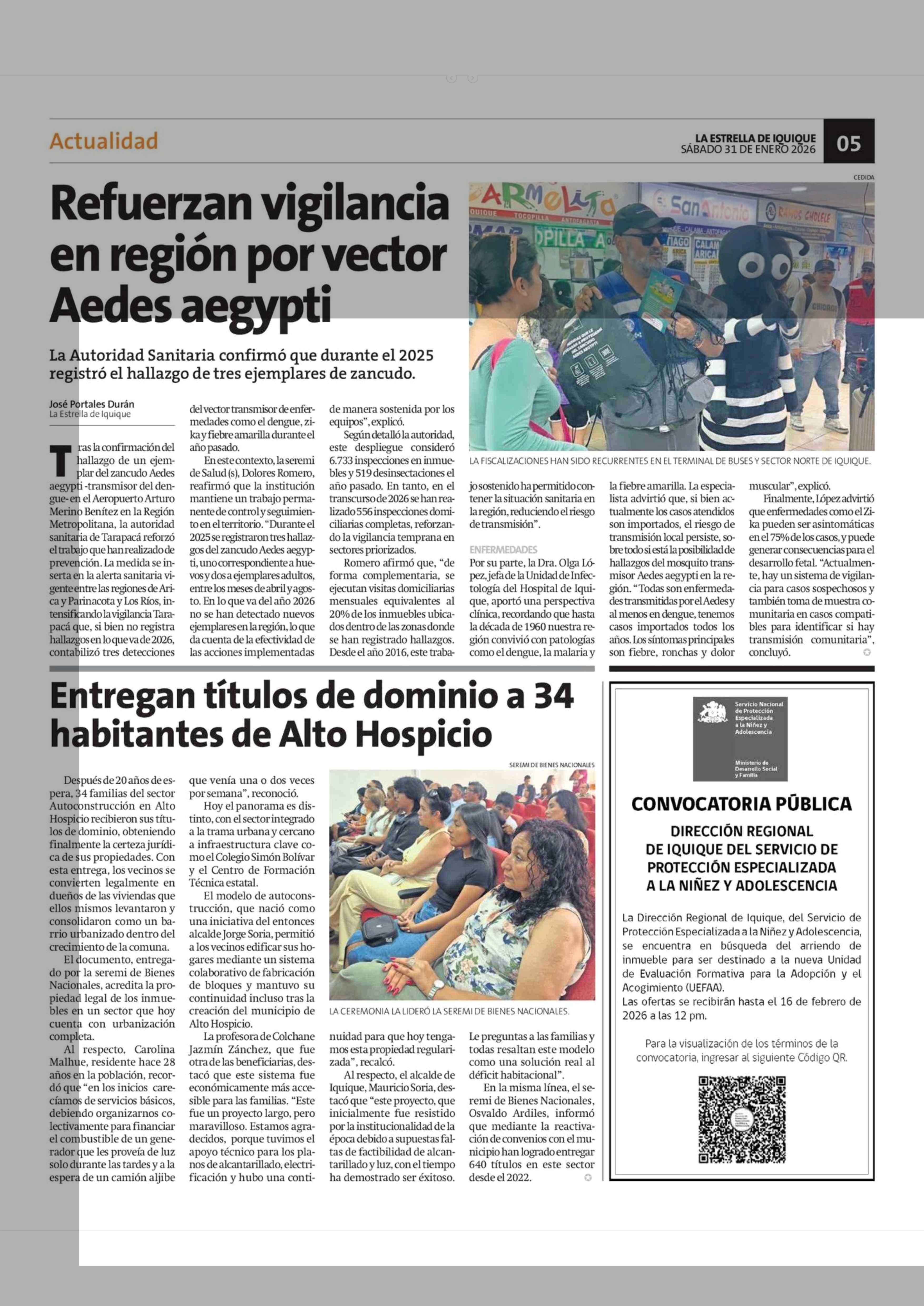 Fecha: 31-01-2026 Sector: Noticia general Región: Región de Tarapacá