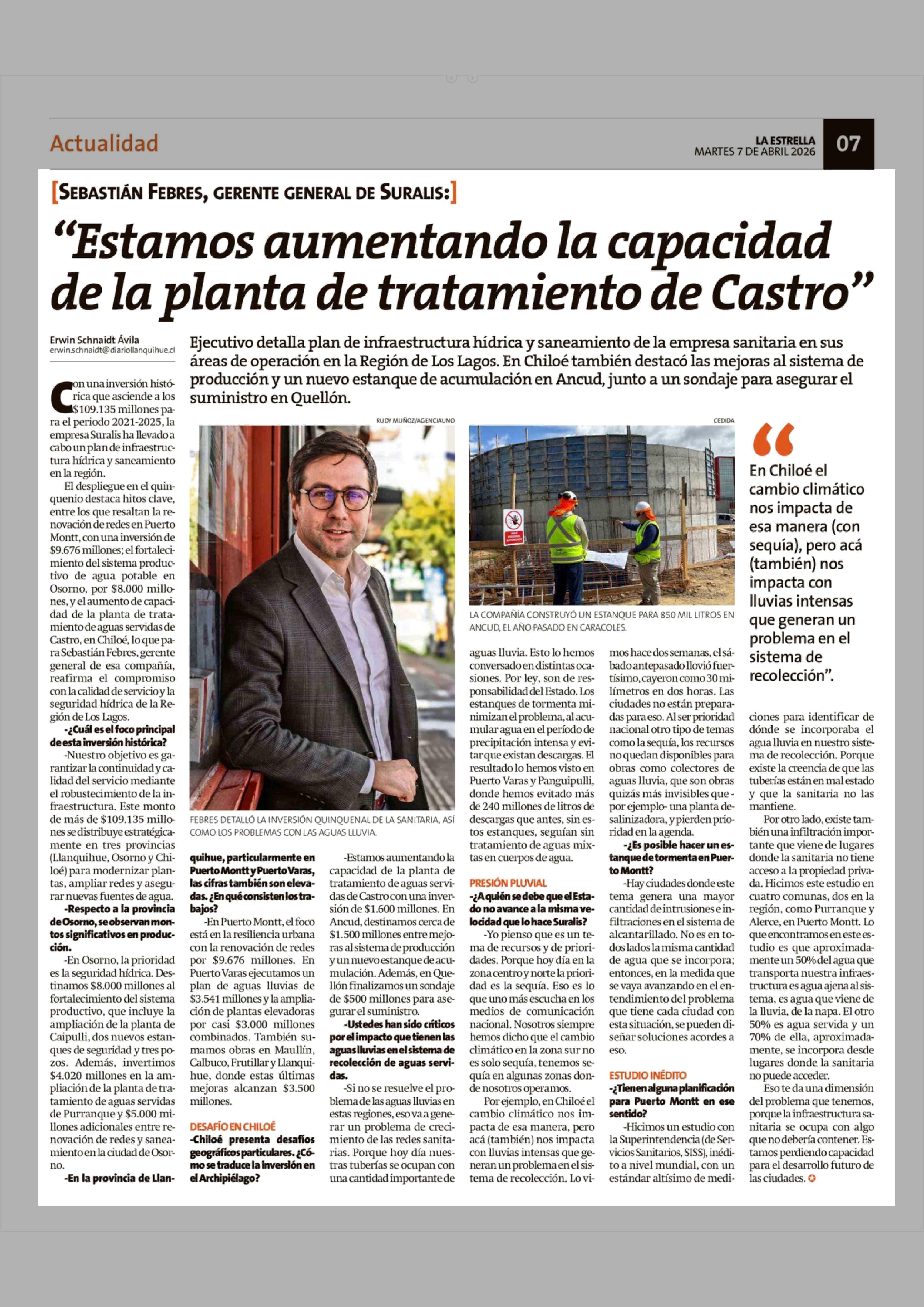 Título: "Estamos aumentando la capacidad de la planta de tratamiento de Castro"