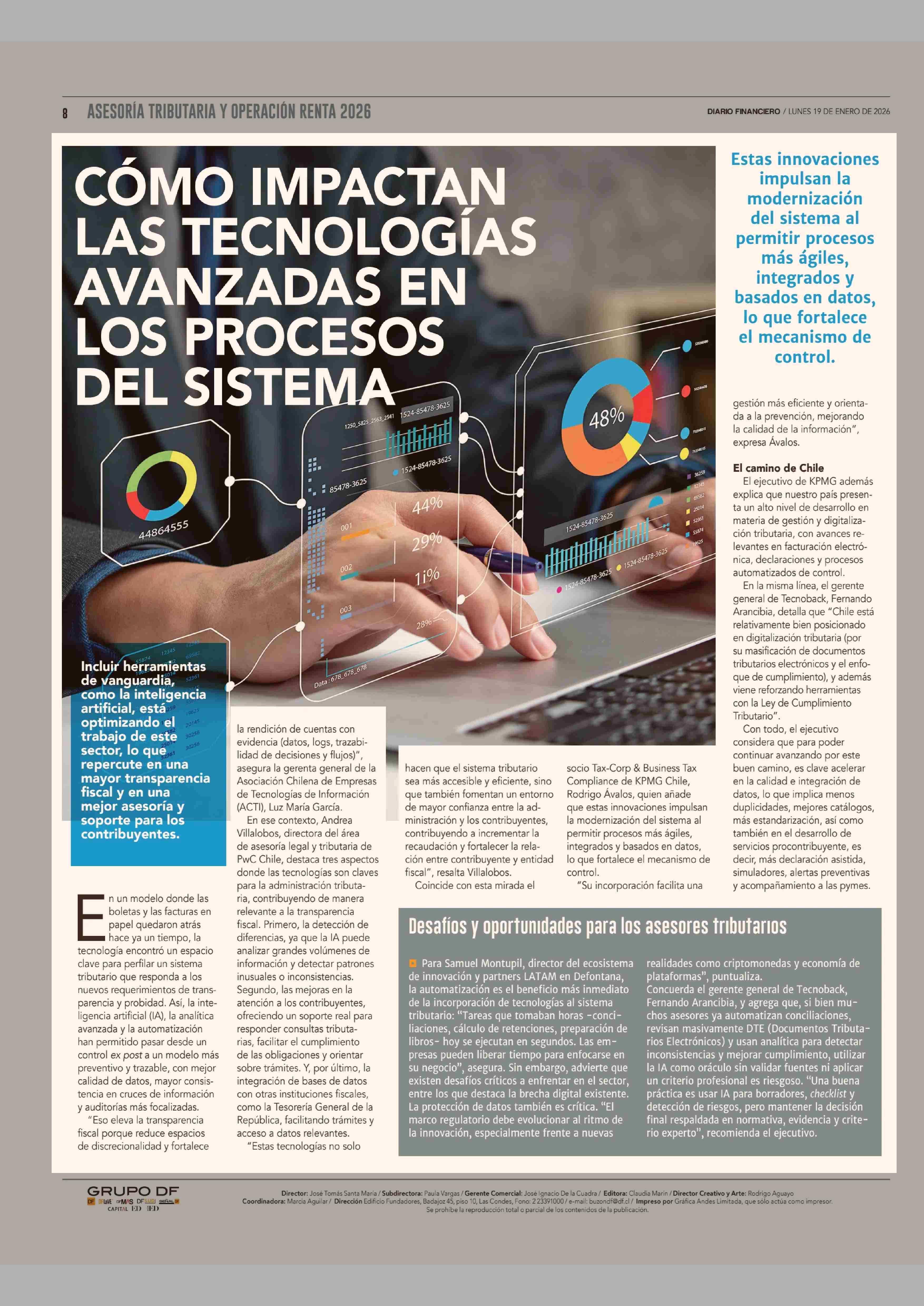 CÓMO IMPACTAN LAS TECNOLOGIAS AVANZADAS EN LOS PROCESOS DEL SISTEMA 19-01-2026 Diario Financiero |
