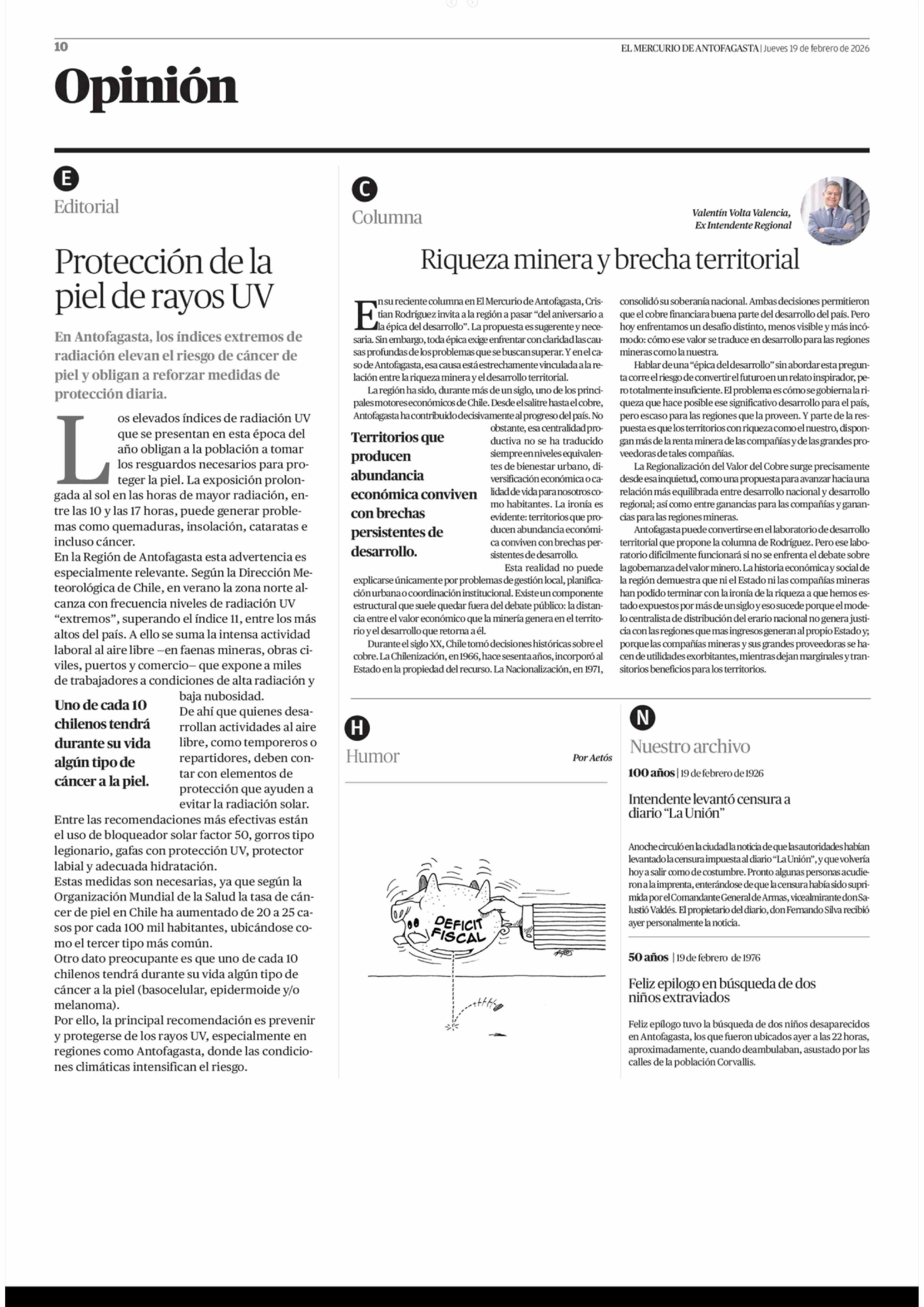 Fecha: 19-02-2026 Sector: Columnas de Opinión Región: Región de Antofagasta