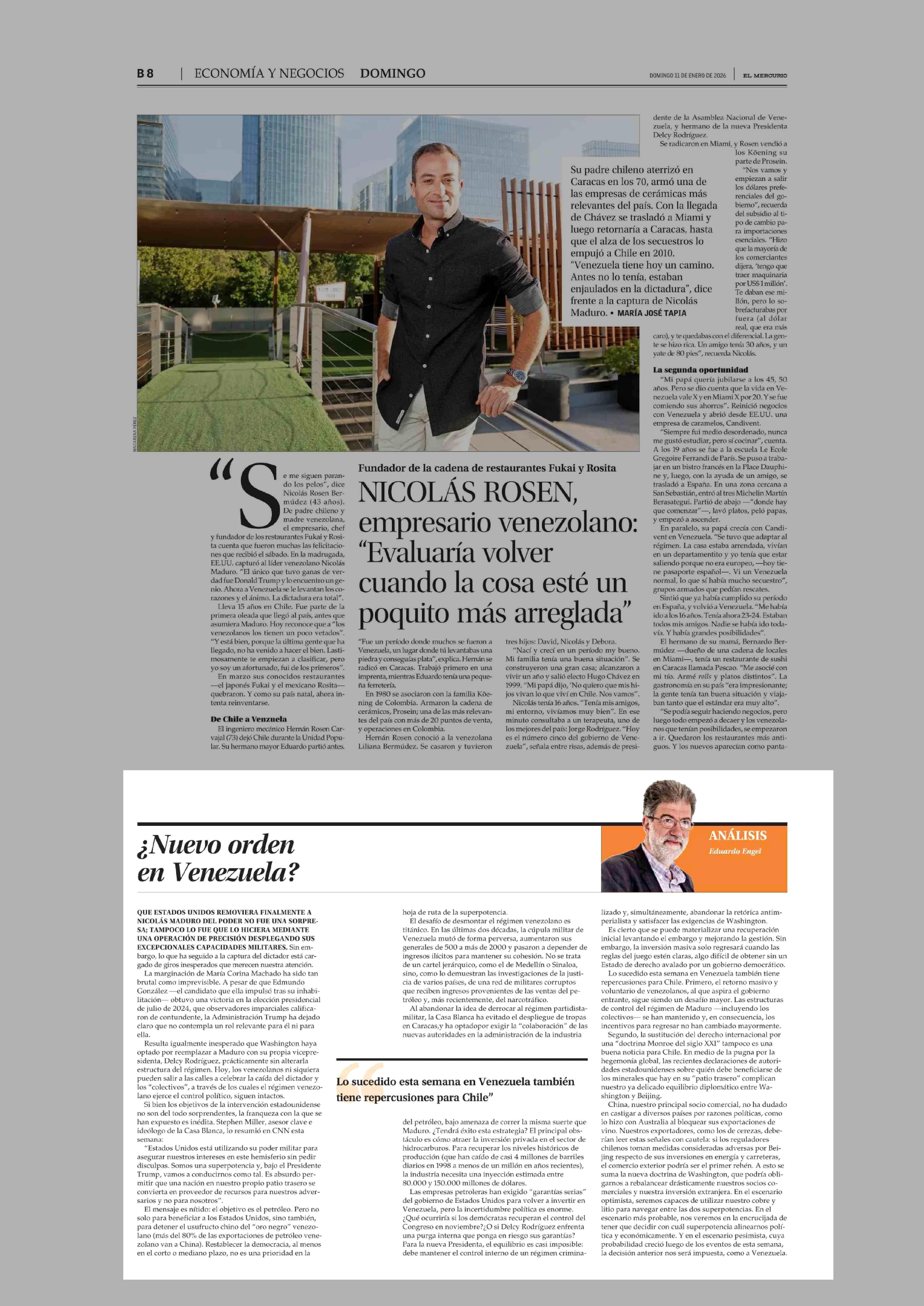 COLUMNAS DE OPINIÓN: ¿Nuevo orden en Venezuela? 11-01-2026 El Mercurio |
