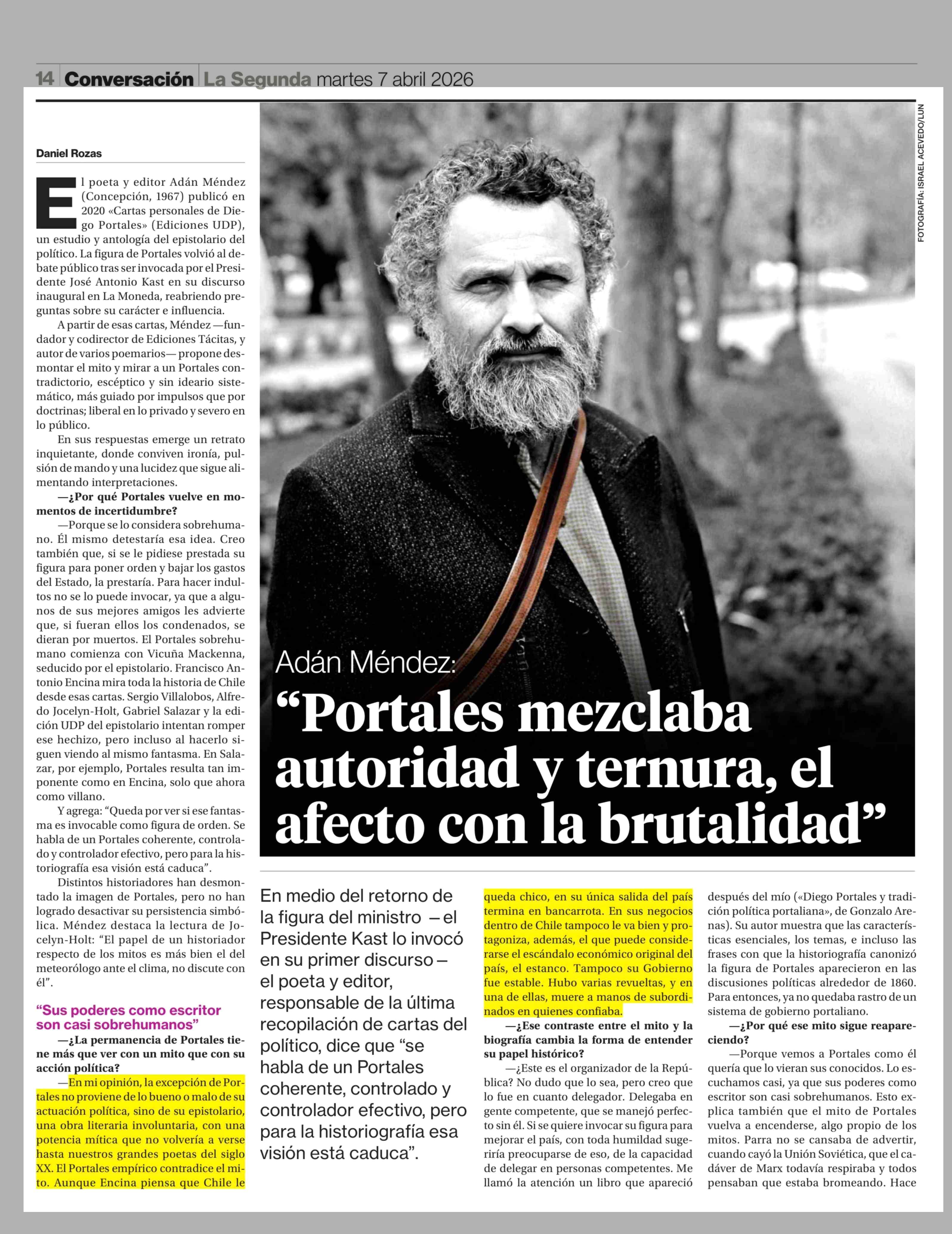 Título: Adán Méndez: "Portales mezclaba autoridad y ternura, el afecto con la brutalidad"