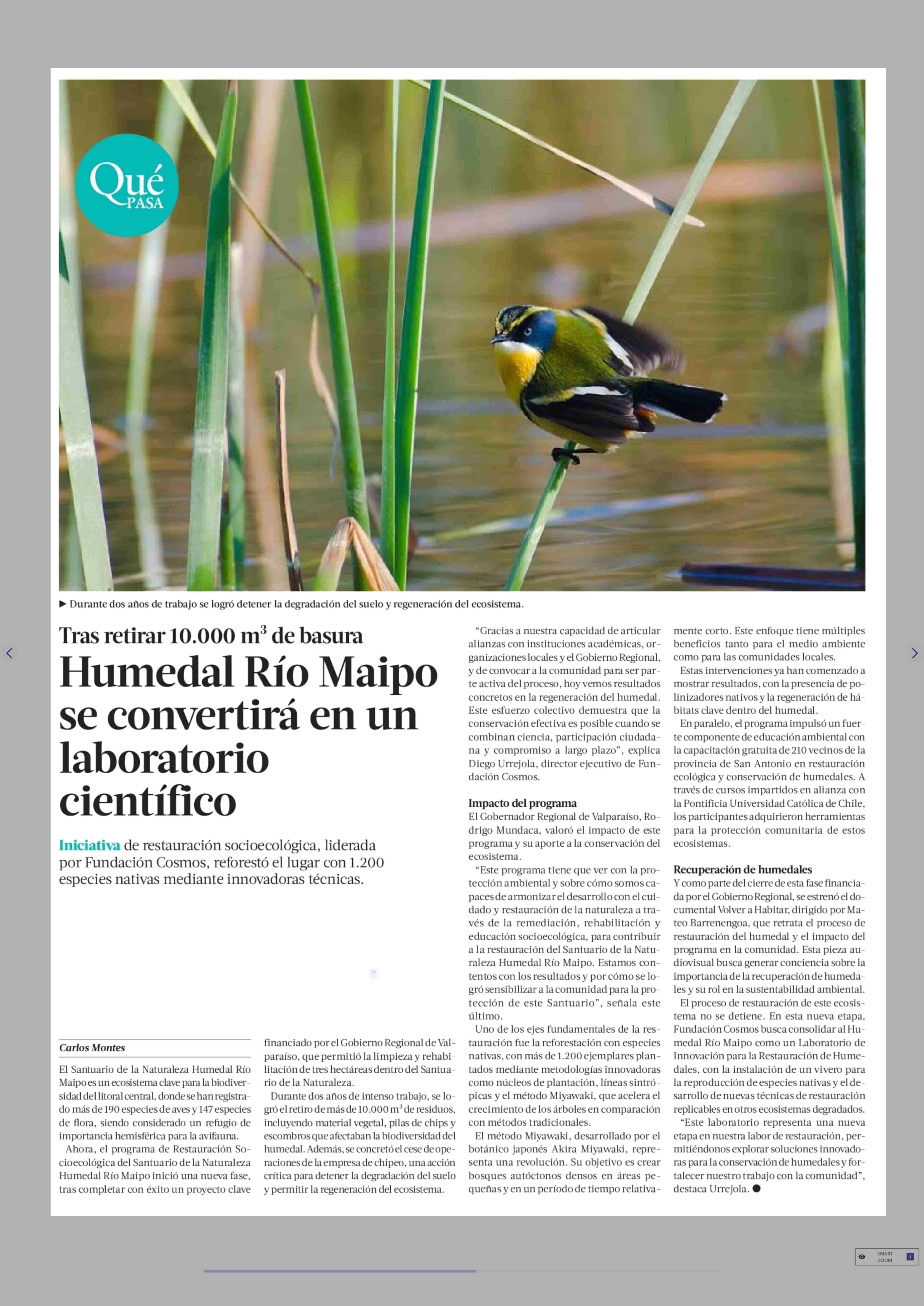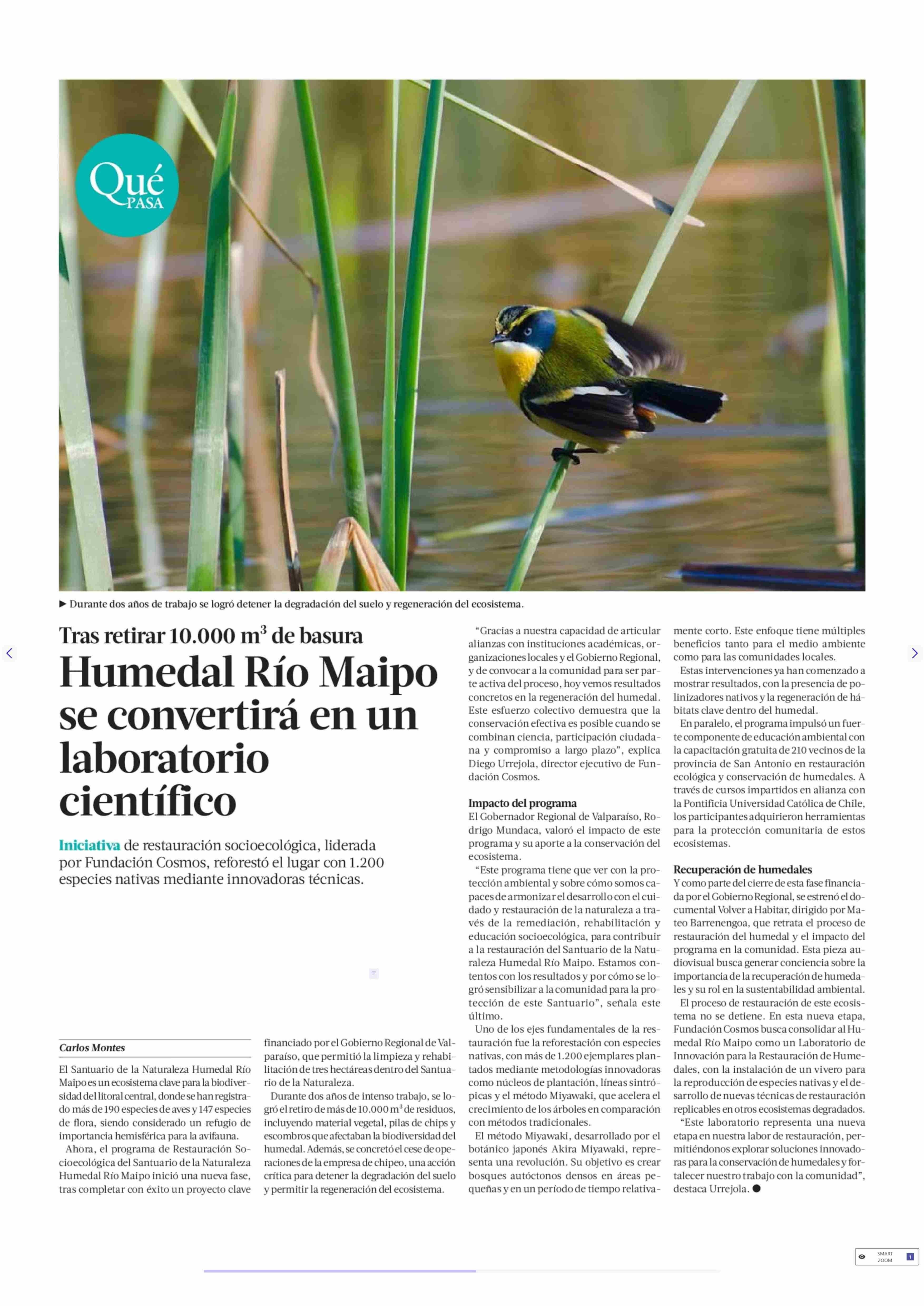 Humedal Río Maipo se convertirá en un laboratorio cientifico 13-03-2025 La Tercera |