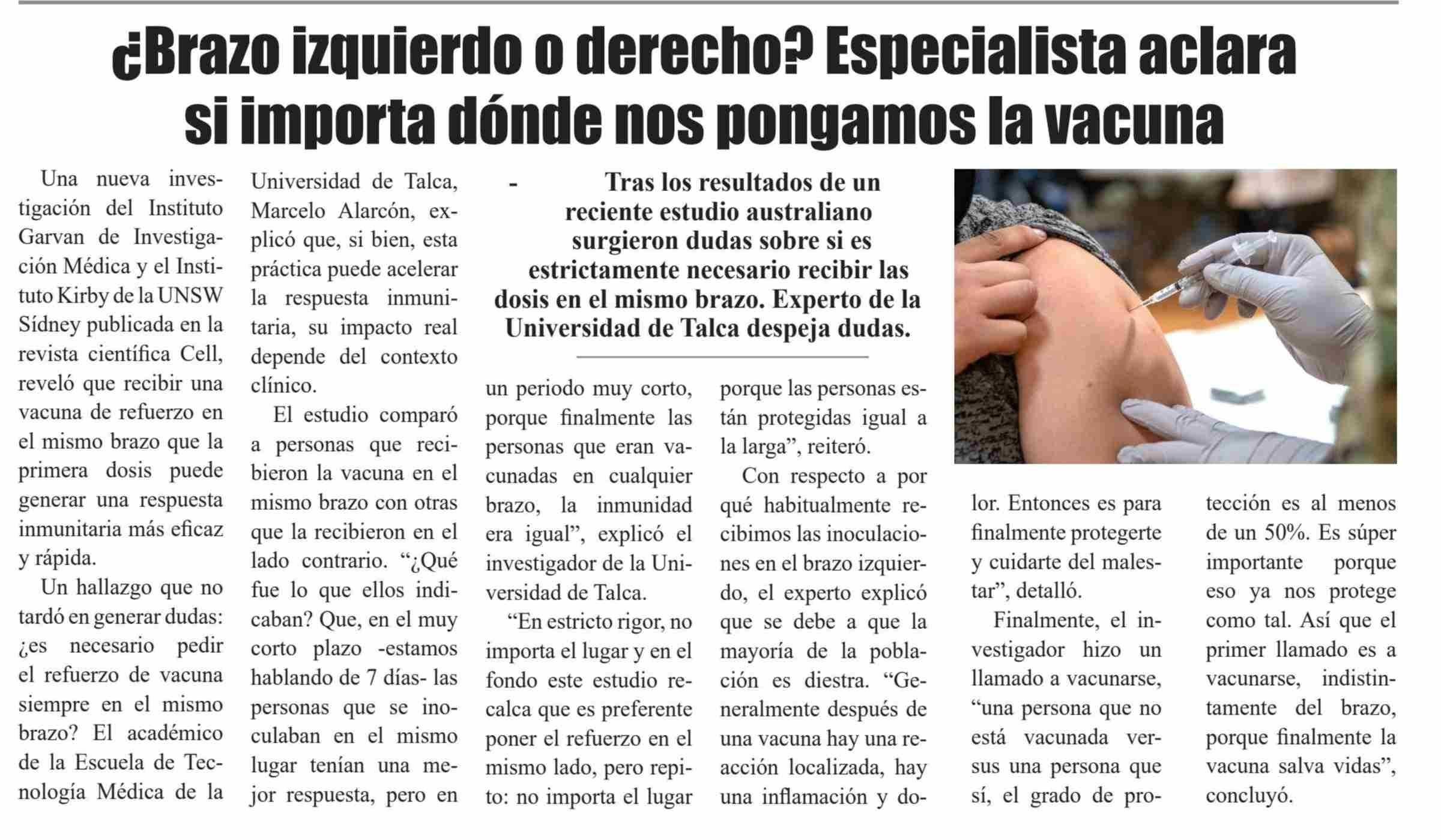 | Título: | ¿Brazo izquierdo o derecho? Especialista aclara si importa dónde nos pongamos la vacuna |