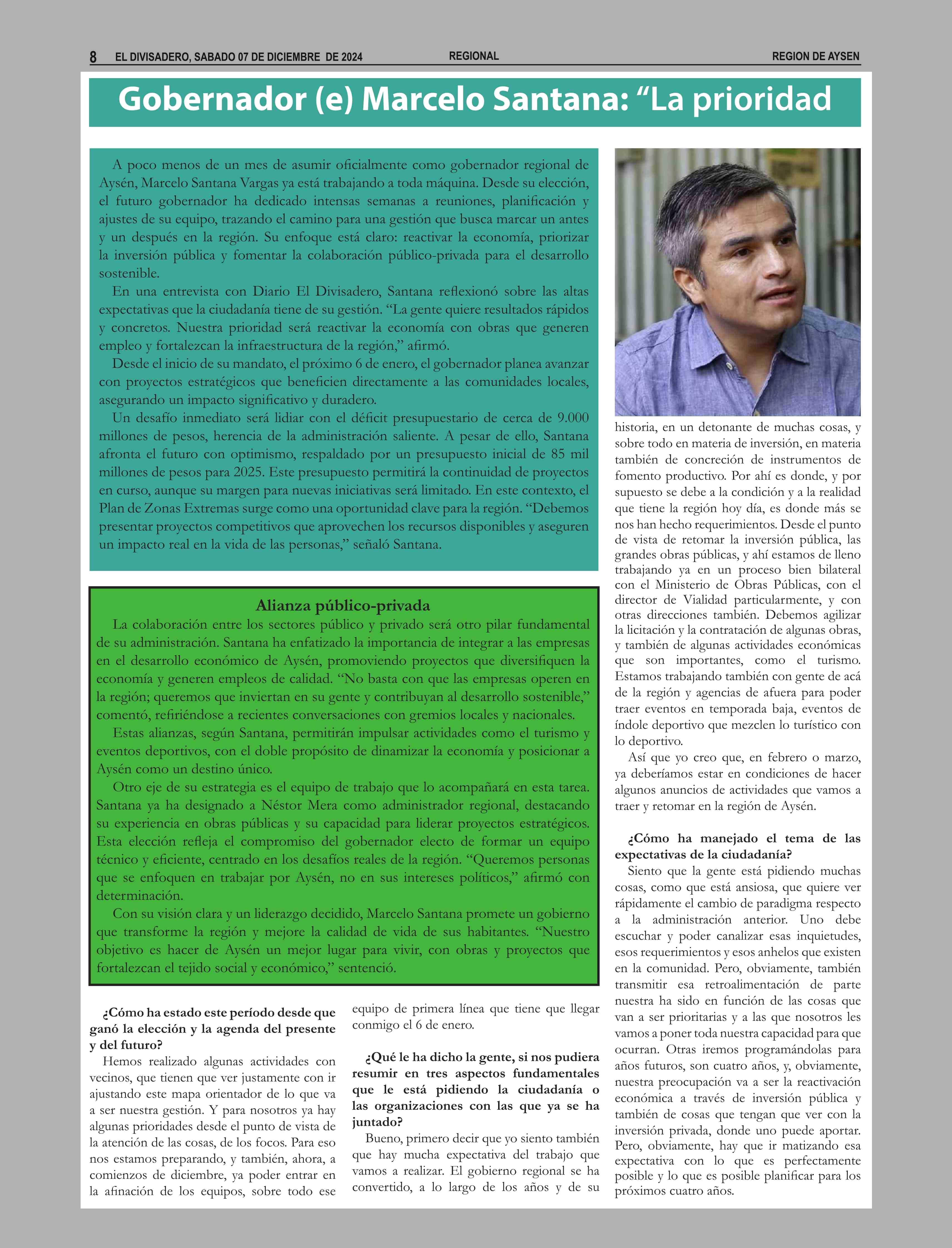 Gobernador (e) Marcelo Santana: “La prioridad 07-12-2024 El Divisadero |