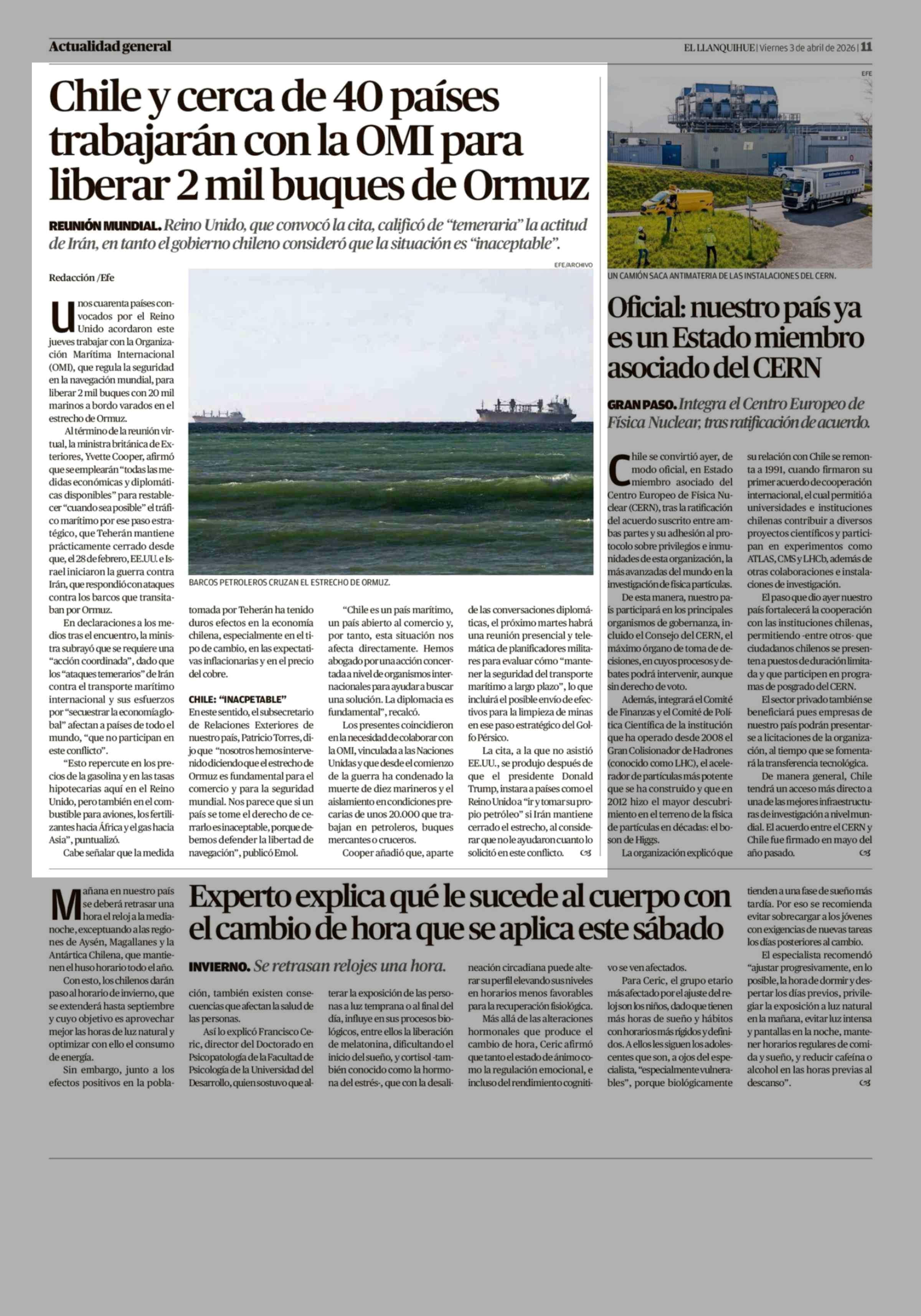 Chile y cerca de 40 países trabajarán con la OMI para liberar 2 mil buques de Ormuz 03-04-2026 El Llanquihue |