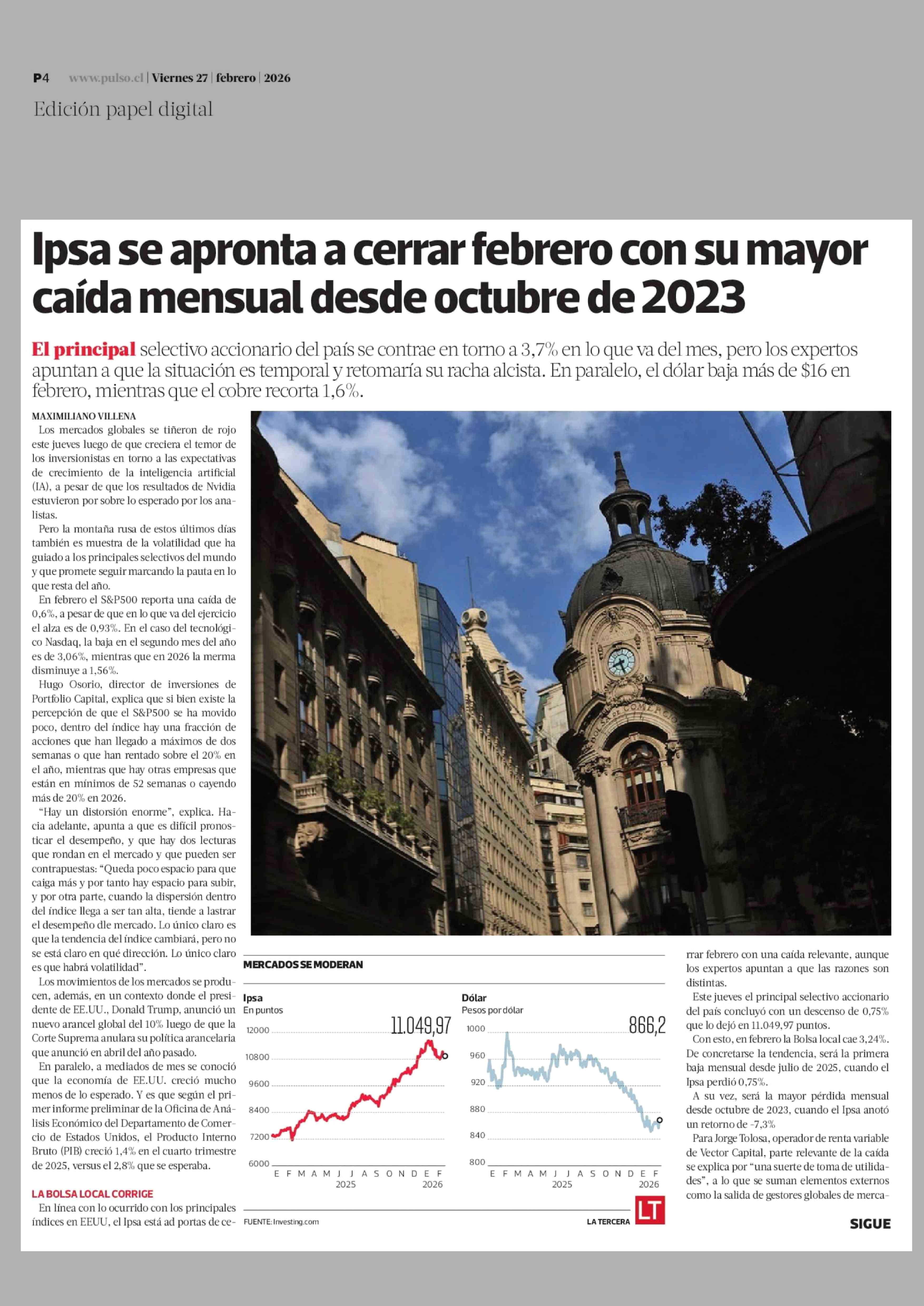 Ipsa se apronta a cerrar febrero con su mayor caída mensual desde octubre de 2023 27-02-2026 La Tercera |