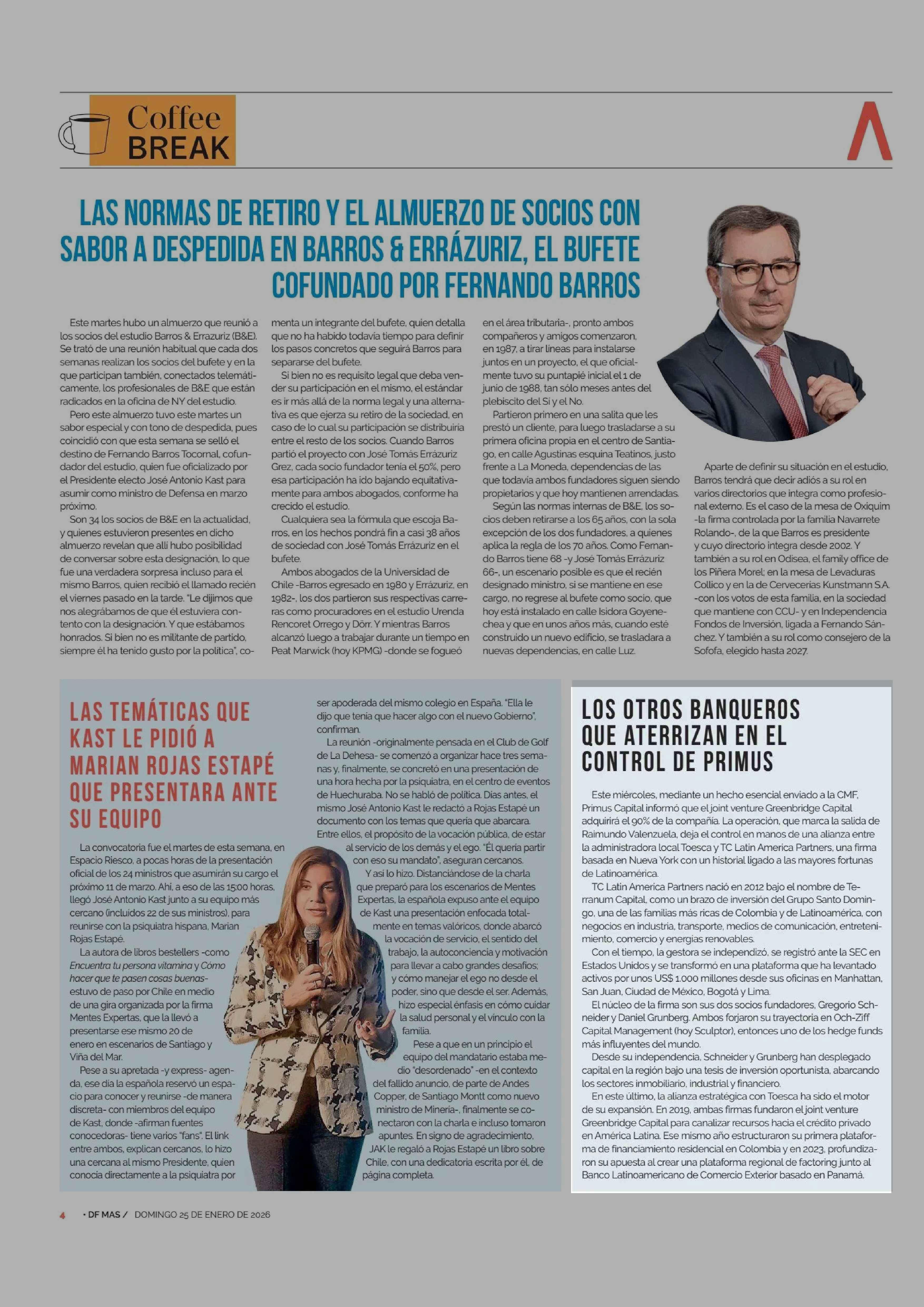 LOS OTROS BANQUEROS QUE ATERRIZAN EN EL CONTROL DE PRIMUS 25-01-2026 Diario Financiero |