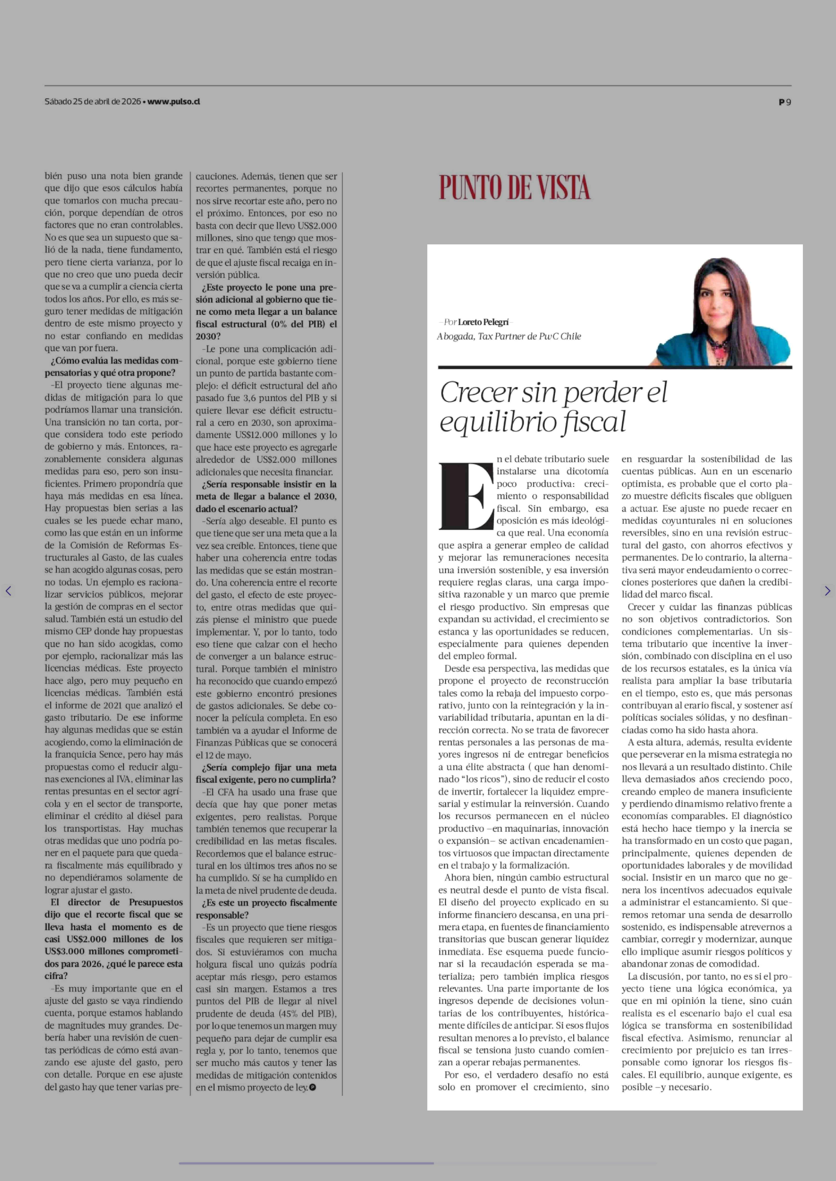 Columnas de Opinión: Crecer sin perder el equilibrio fiscal 25-04-2026 La Tercera |