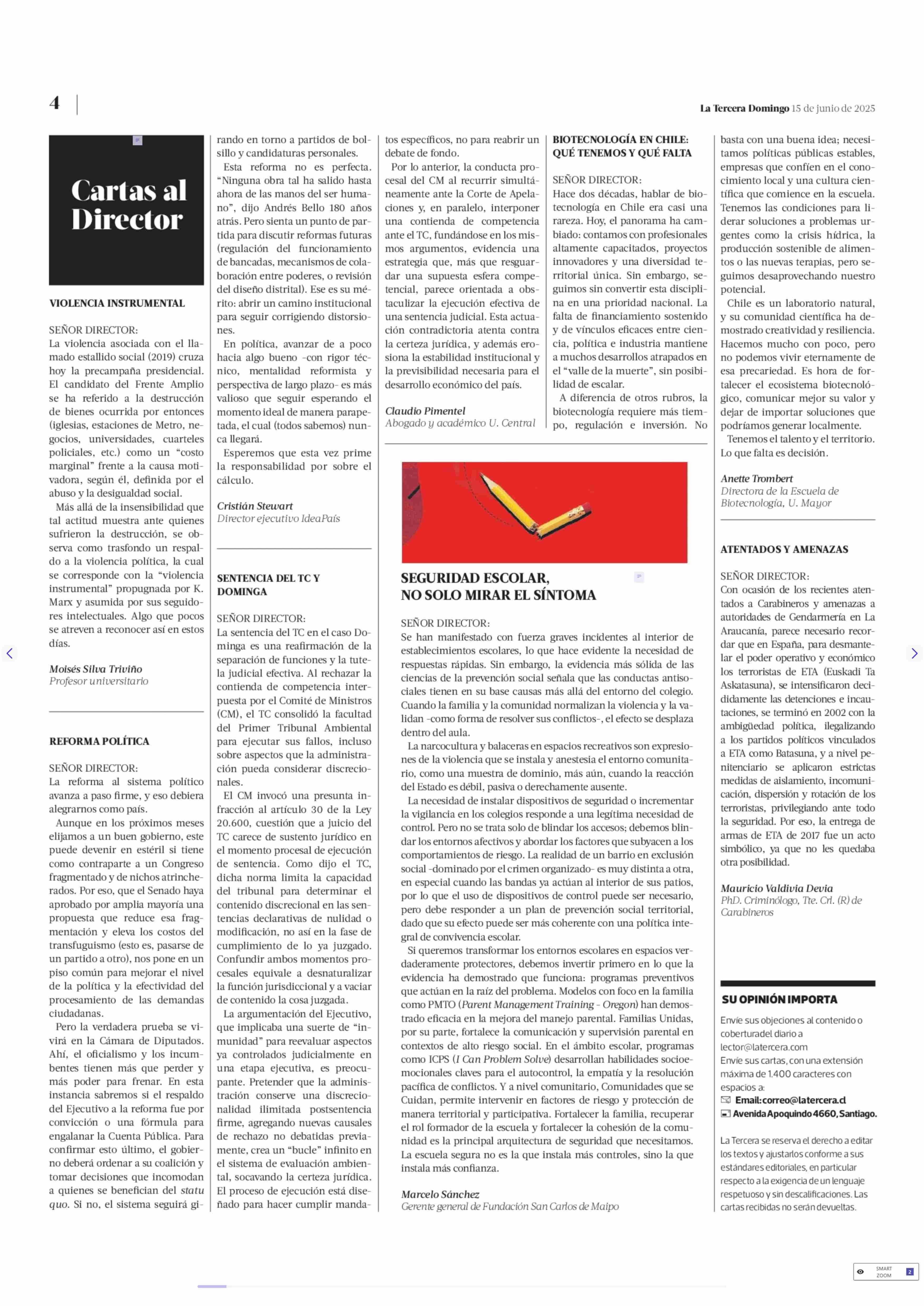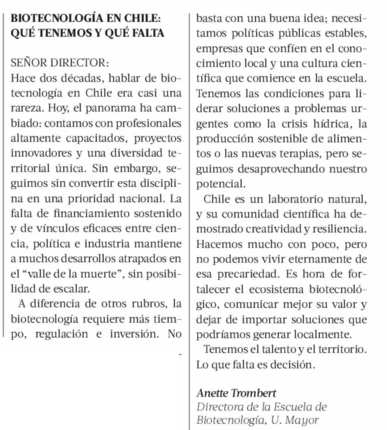 BIOTECNOLOGÍA EN CHILE: QUÉ TENEMOS Y QUÉ FALTA 15-06-2025 La Tercera |