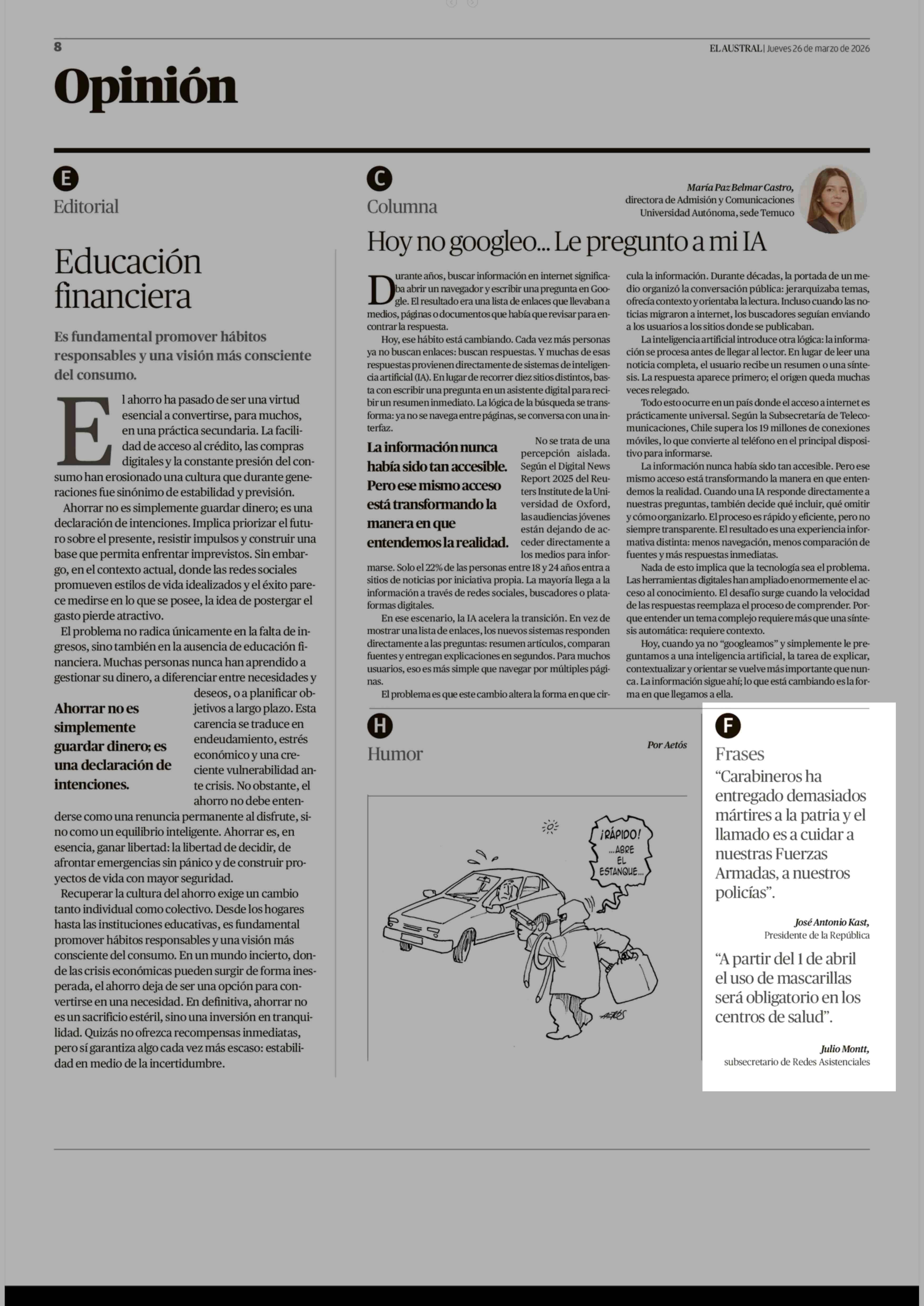 "Carabineros ha nuestras Fuerzas 26-03-2026 El Austral de la Araucanía |
