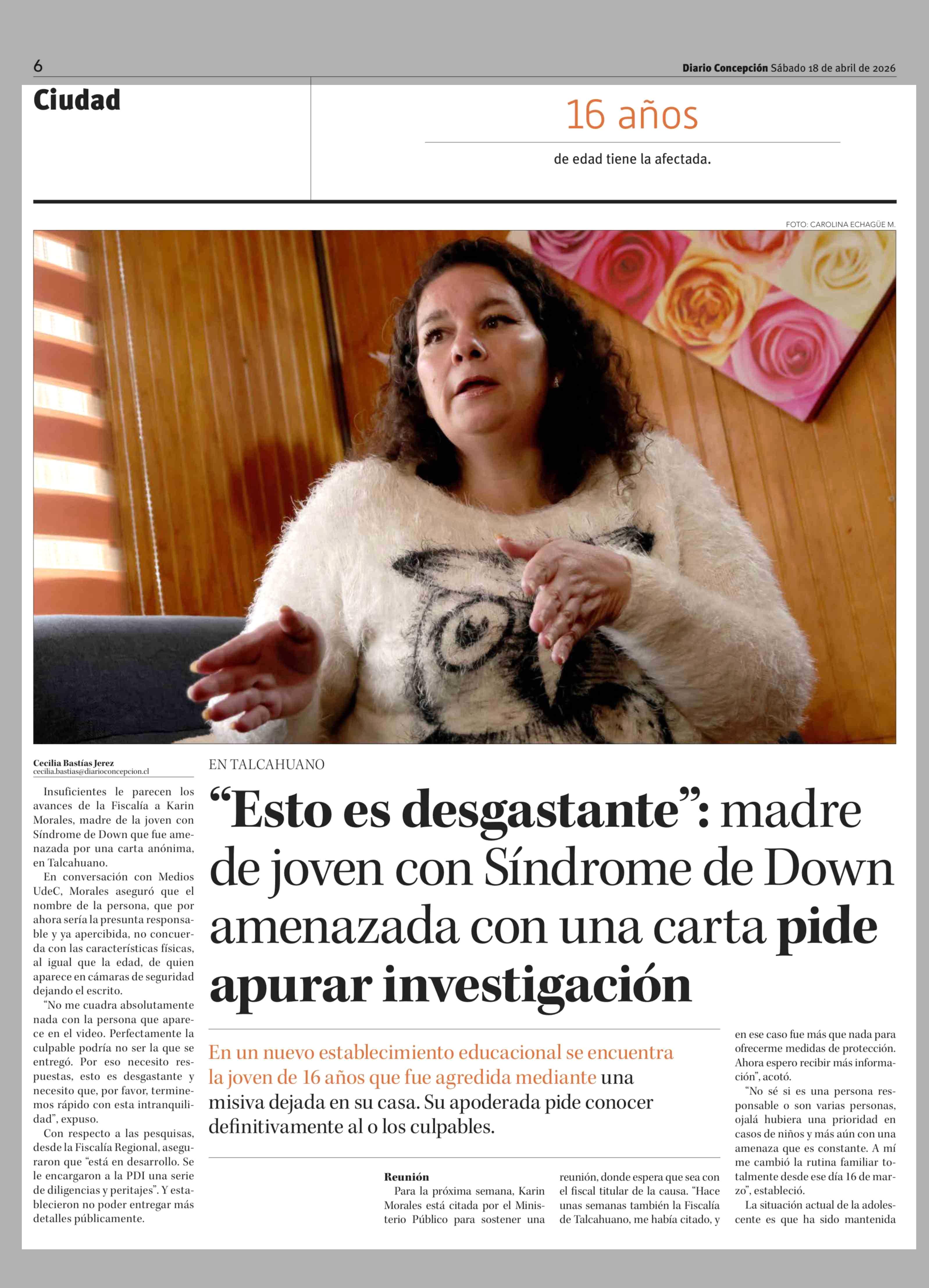 Título: "Esto es desgastante": madre de joven con Síndrome de Down amenazada con una carta pide apurar investigación