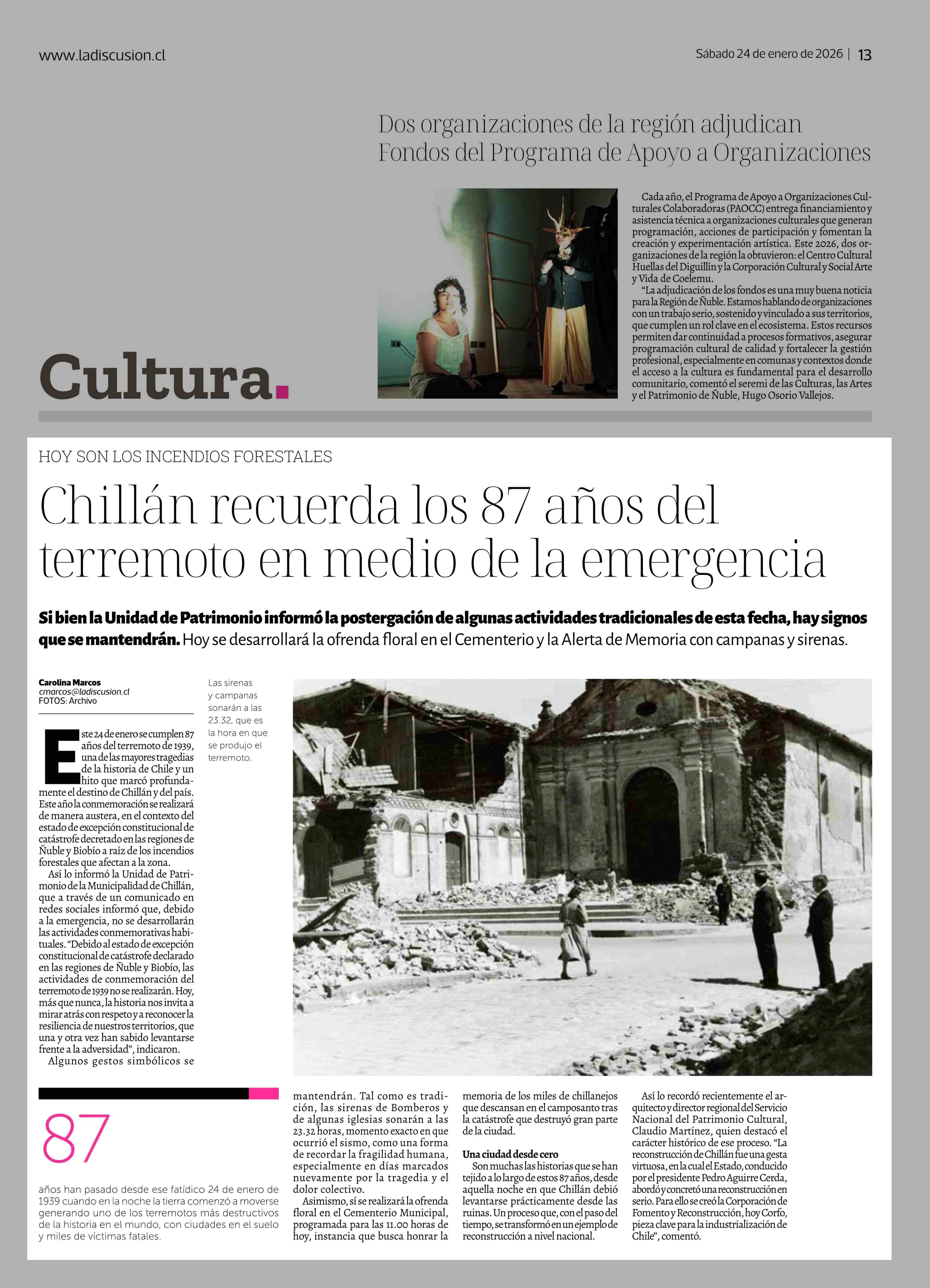 Título: Chillán recuerda los 87 años del terremoto en medio de la emergencia