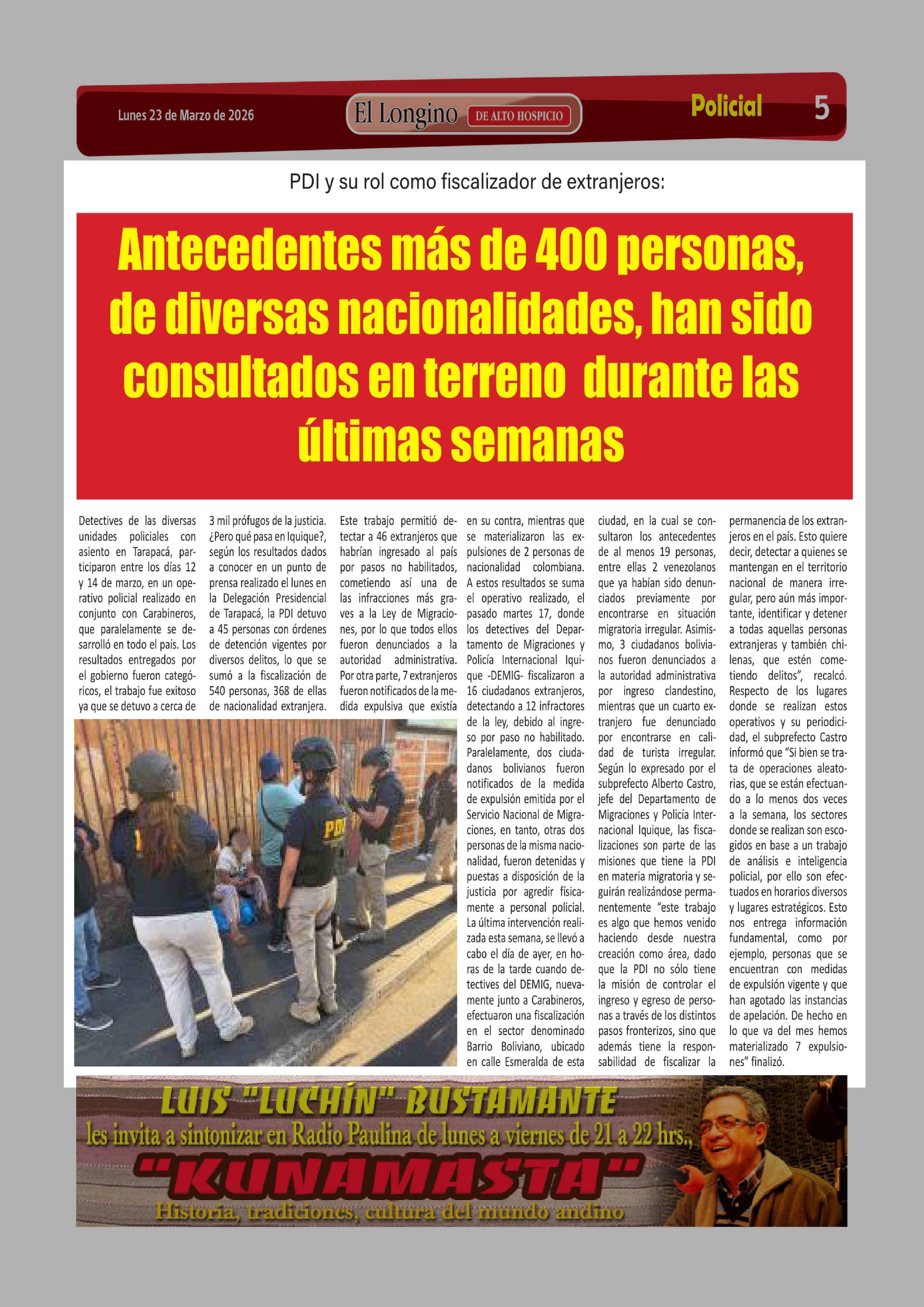 | Fecha: | 23-03-2026 | Sector: | Noticia general | Región: | Región de Tarapacá |