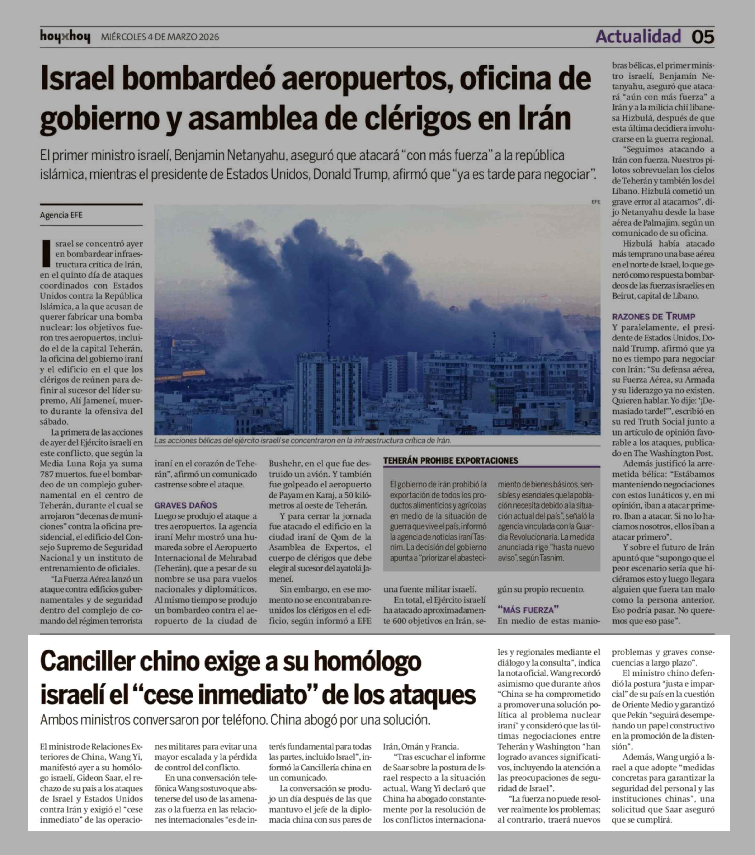 Canciller chino exige a su homólogo israelí el "cese inmediato" de los ataques 04-03-2026 Hoy x Hoy |