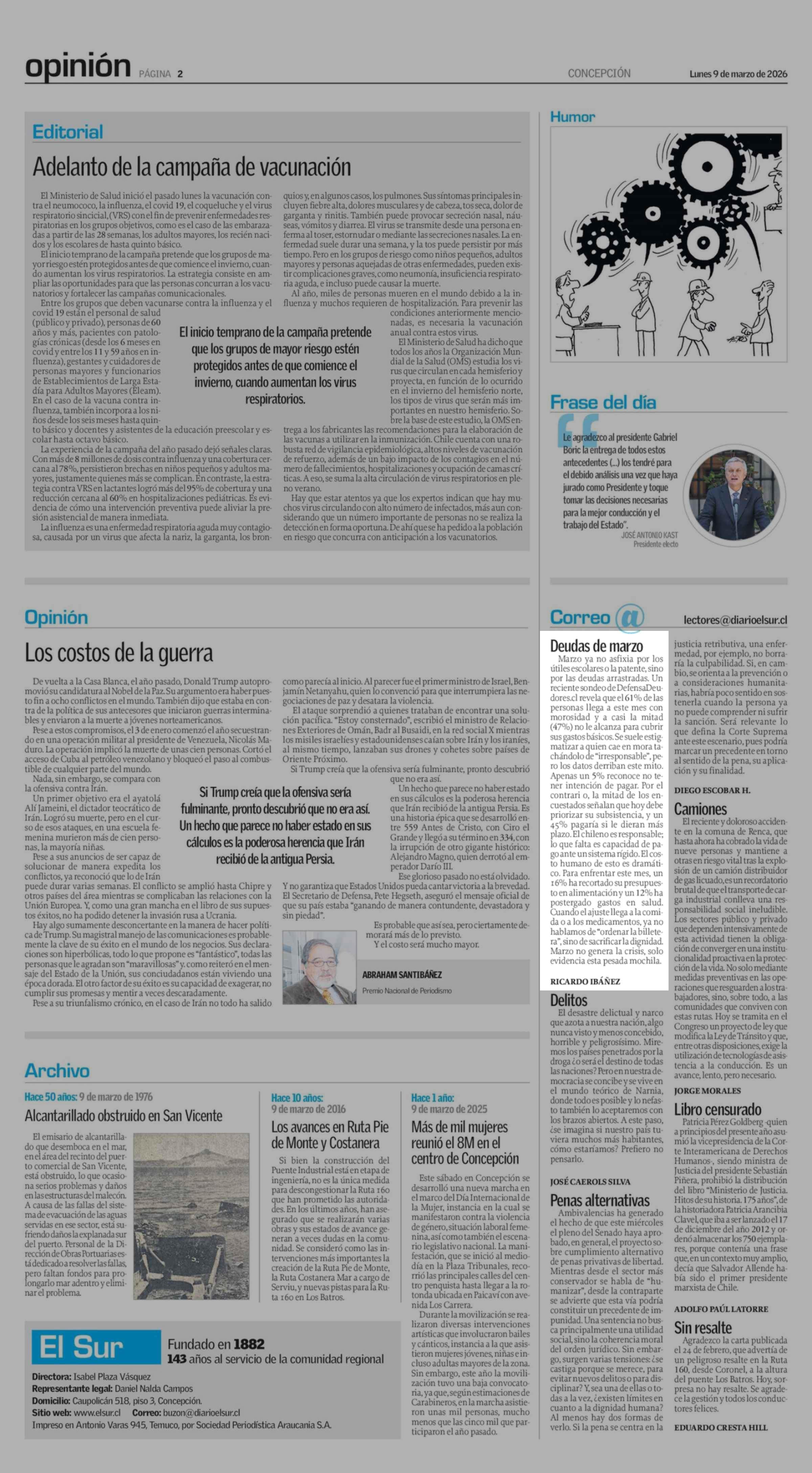 CARTAS: Deudas de marzo 09-03-2026 El Sur |