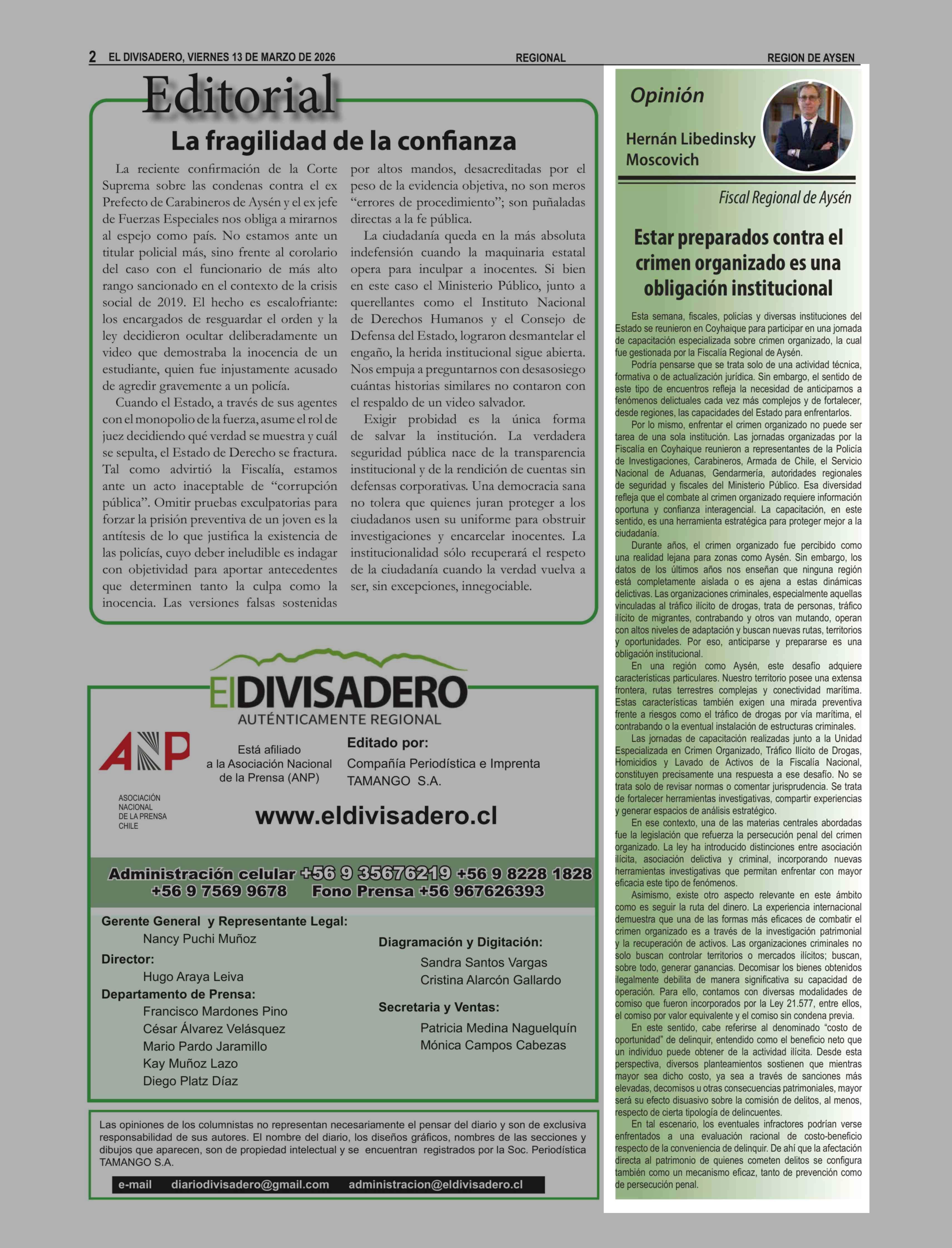 Columnas de Opinión: Estar preparados contra el crimen organizado es una obligación institucional 13-03-2026 El Divisadero |