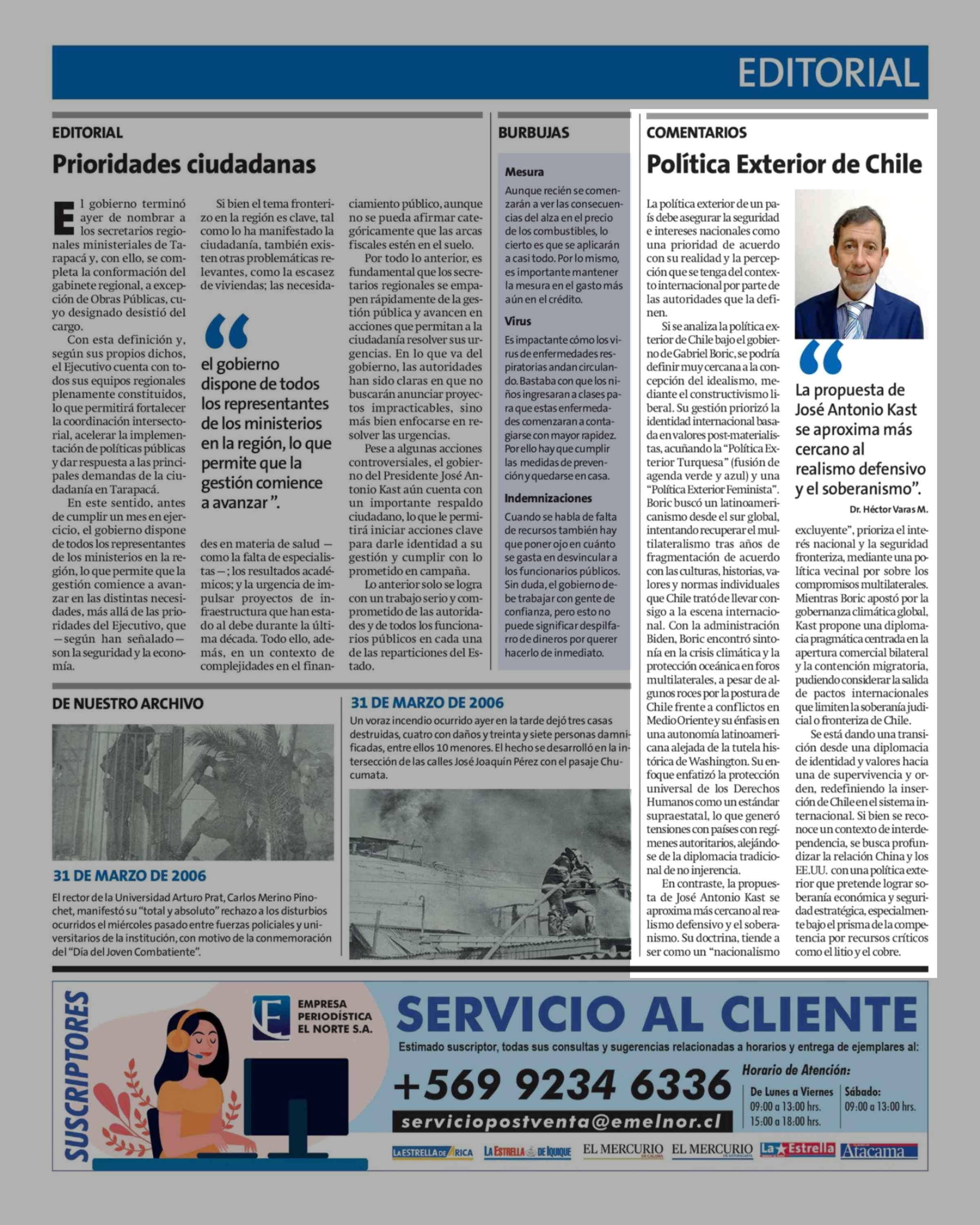 Columnas de Opinión: Política Exterior de Chile 31-03-2026 La Estrella de Iquique |