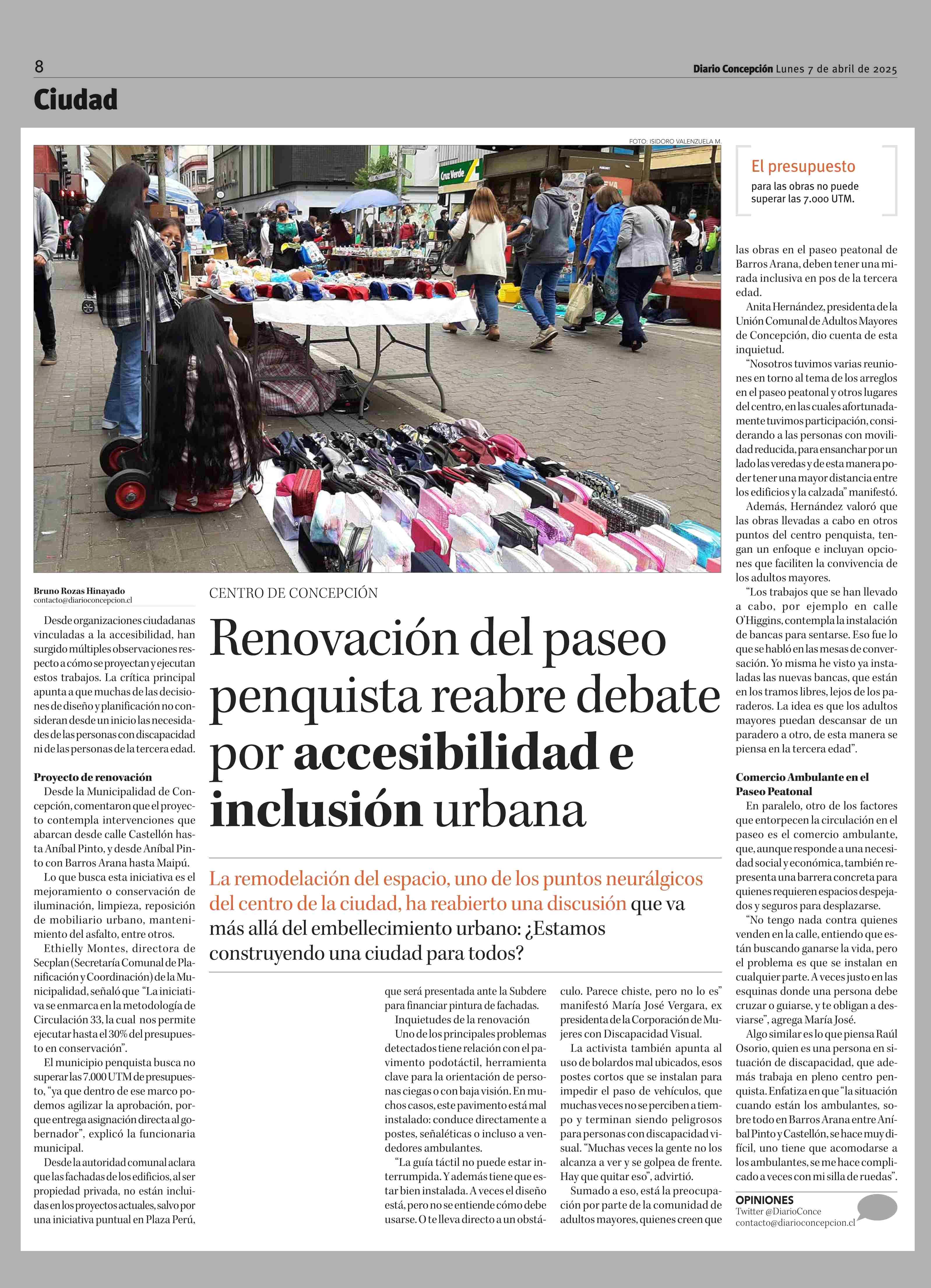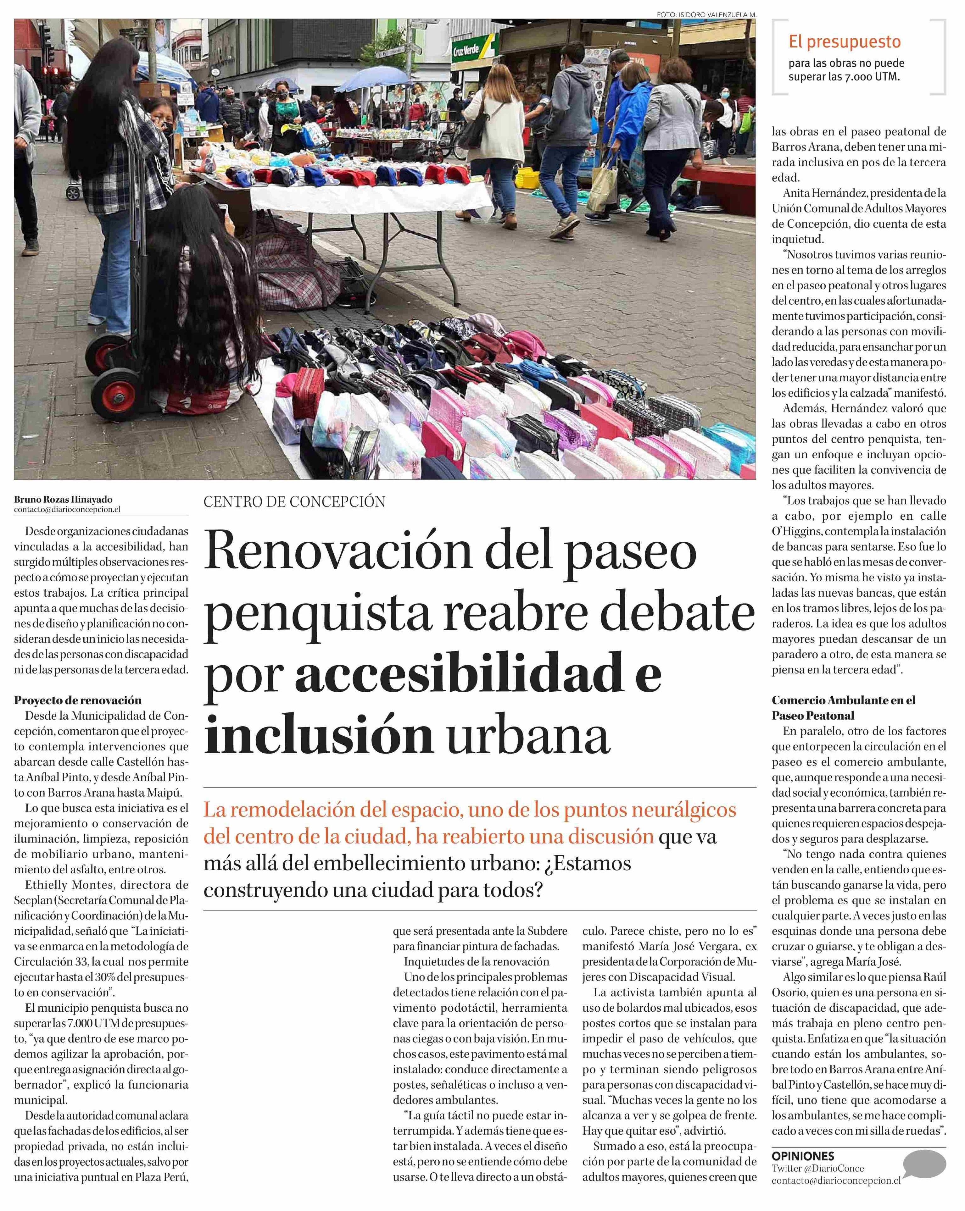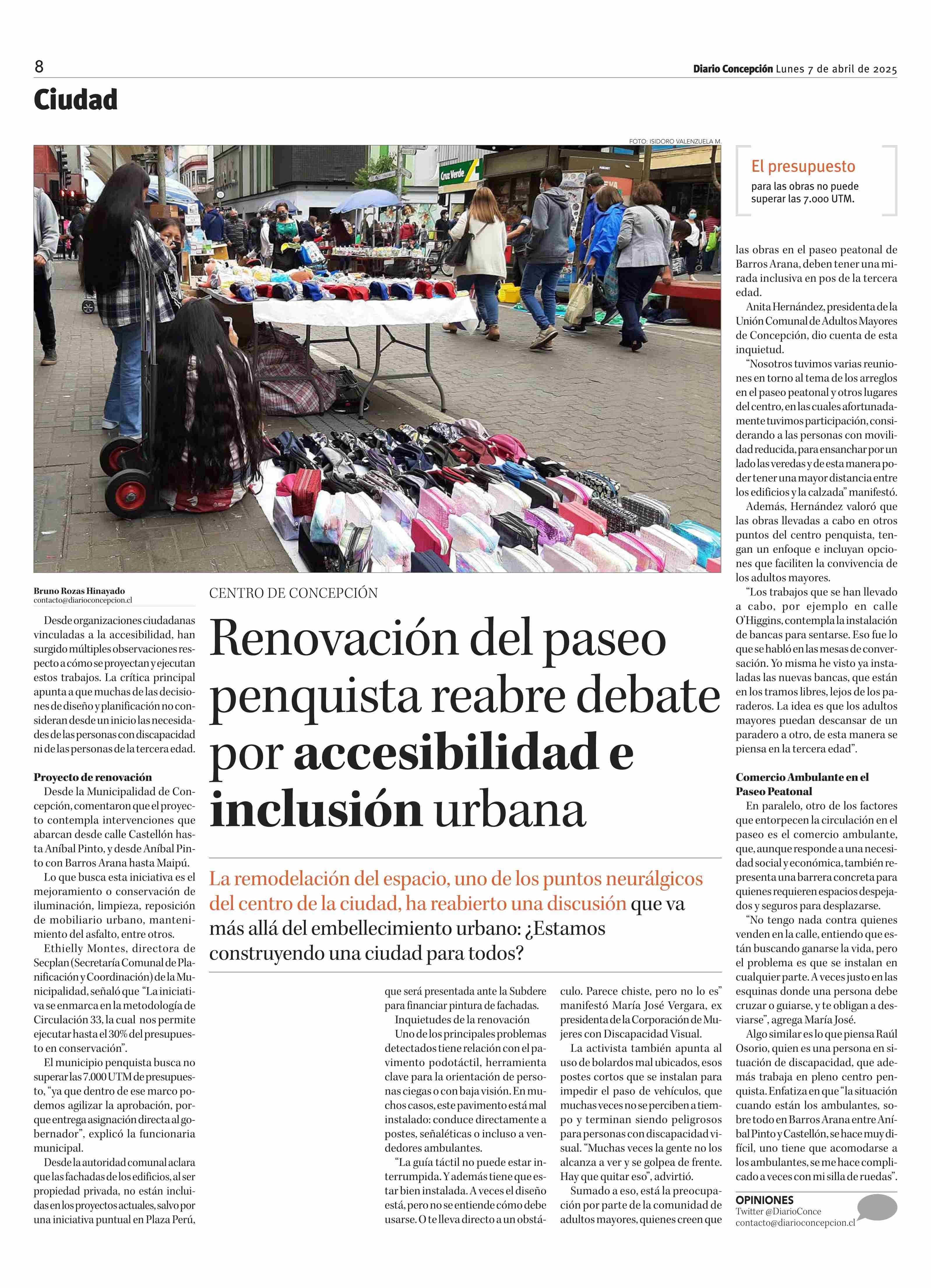 Renovación del paseo penquista reabre debate por accesibilidad e inclusión urbana 07-04-2025 Diario Concepción |