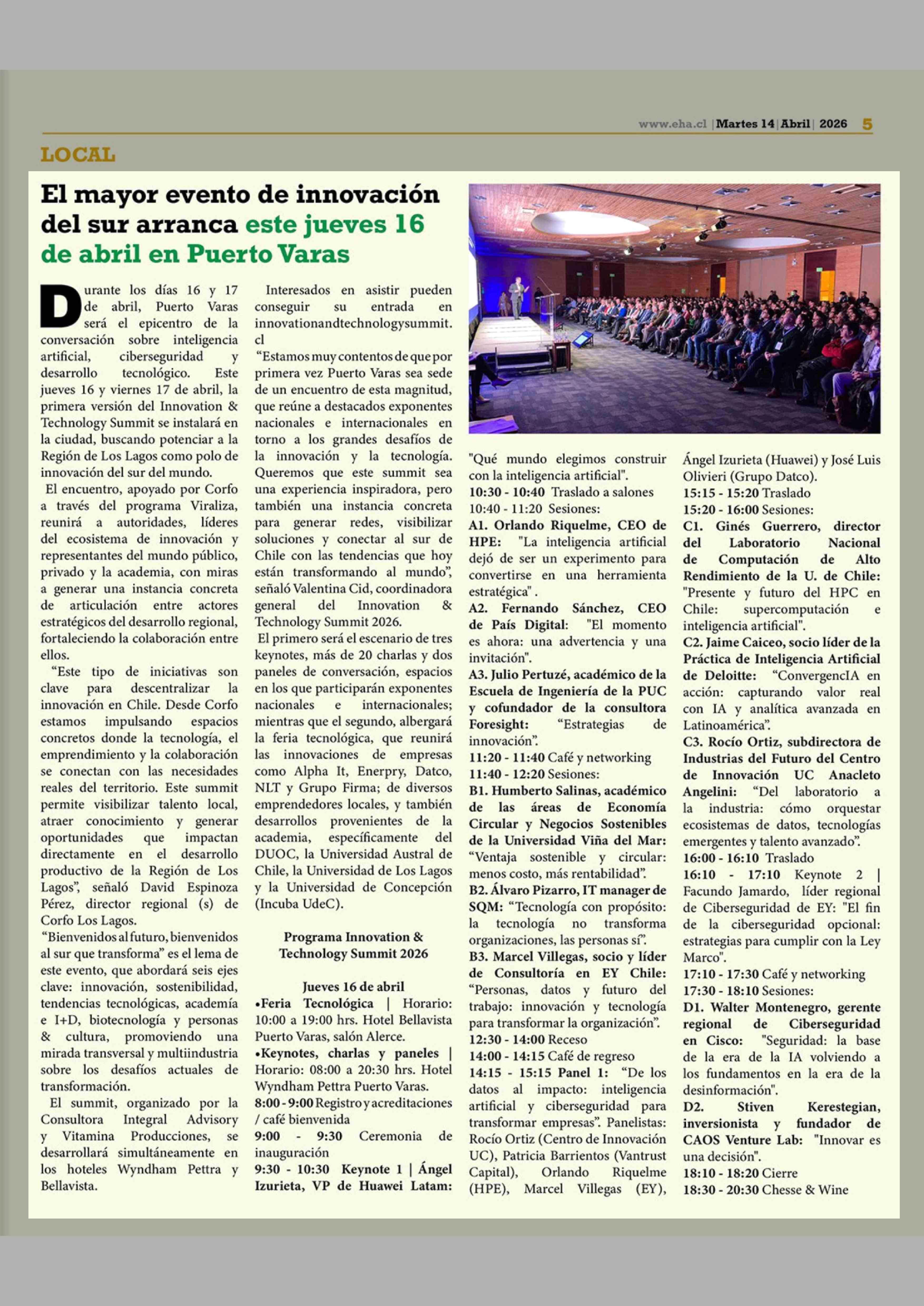 El mayor evento de innovación del sur arranca este jueves 16 de abril en Puerto Varas 14-04-2026 El Heraldo Austral |