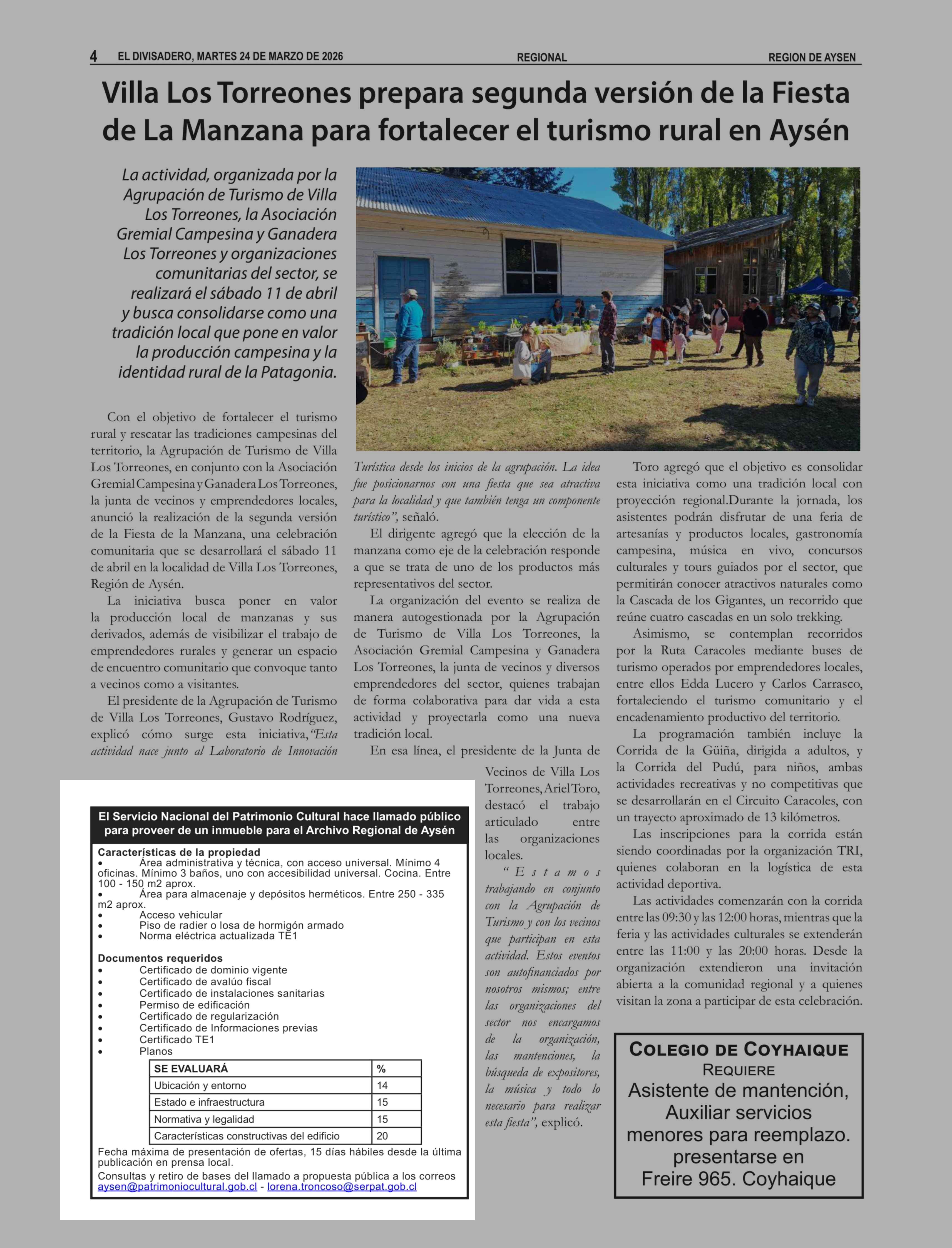 Fecha: 24-03-2026 Sector: Aviso Licitaciones Región: Región Aysén del General Carlos Ibáñez del Campo