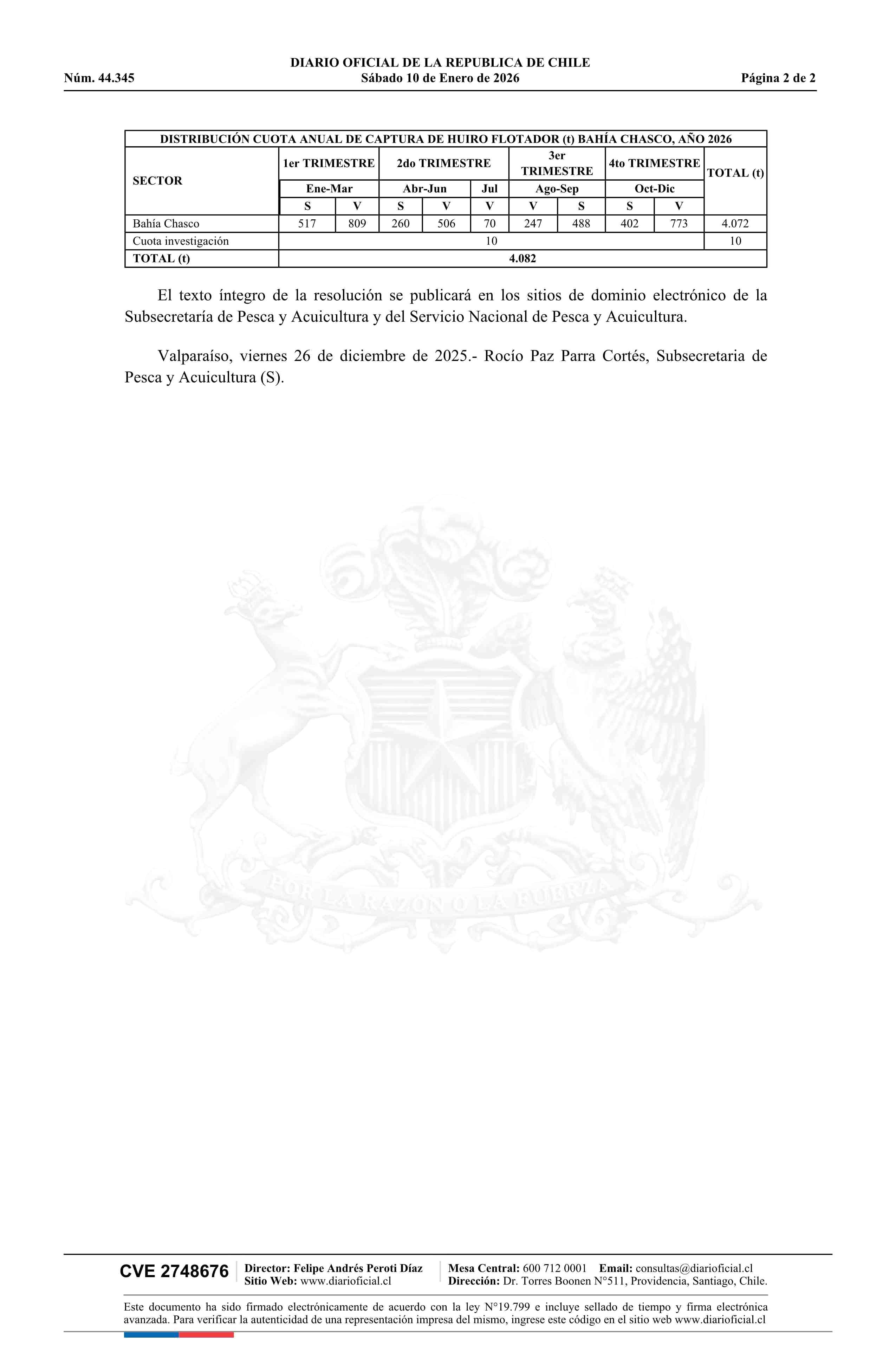 Título: Extracto de resolución exenta número 2.964, de 2025.- Establece distribución cuota de los recursos Huiro negro, Huiro palo y Huiro flotador en la Región de Atacama, temporada extractiva y de recolección año 2026