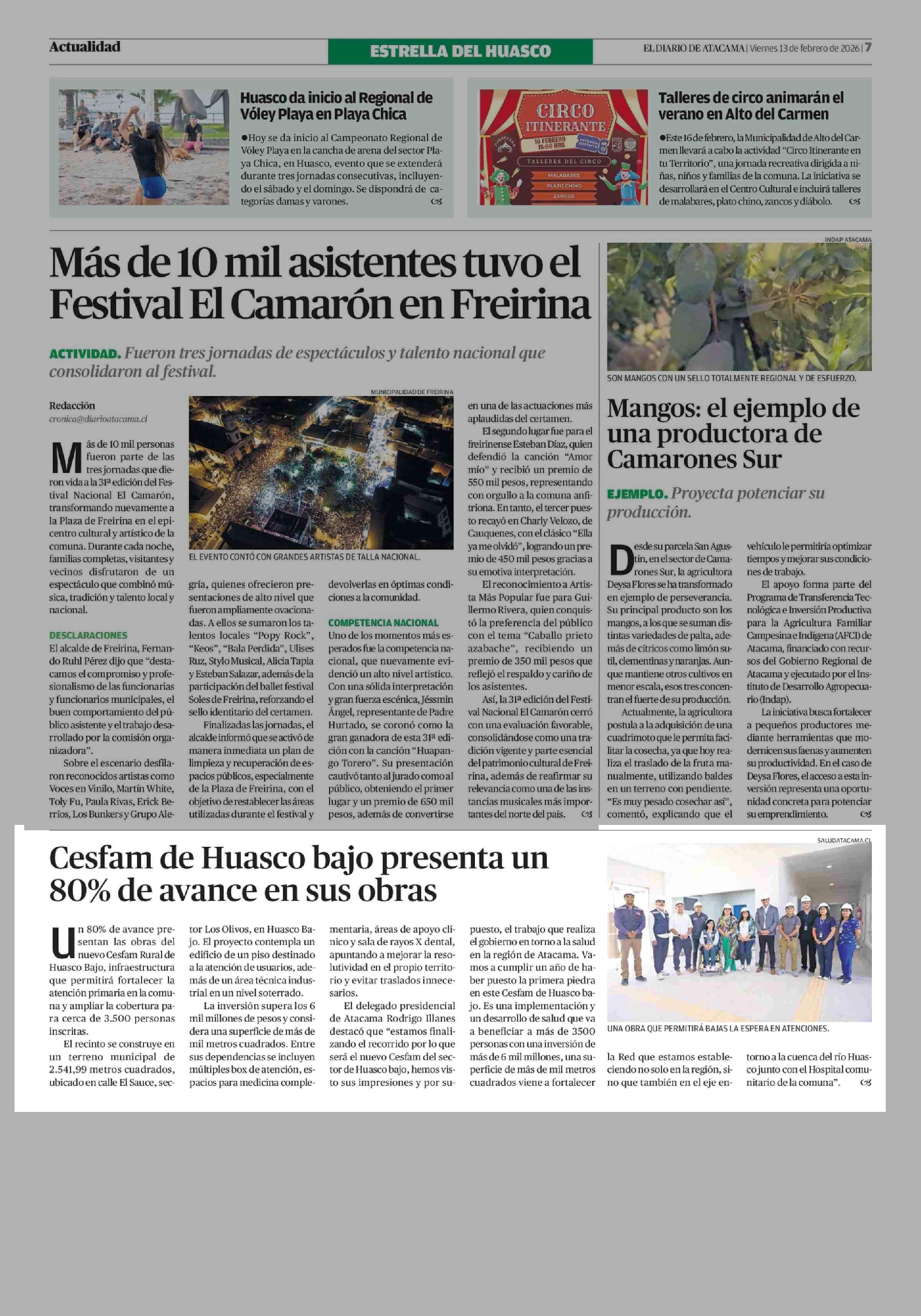 | Fecha: | 13-02-2026 | Sector: | Noticia general | Región: | Región de Atacama |