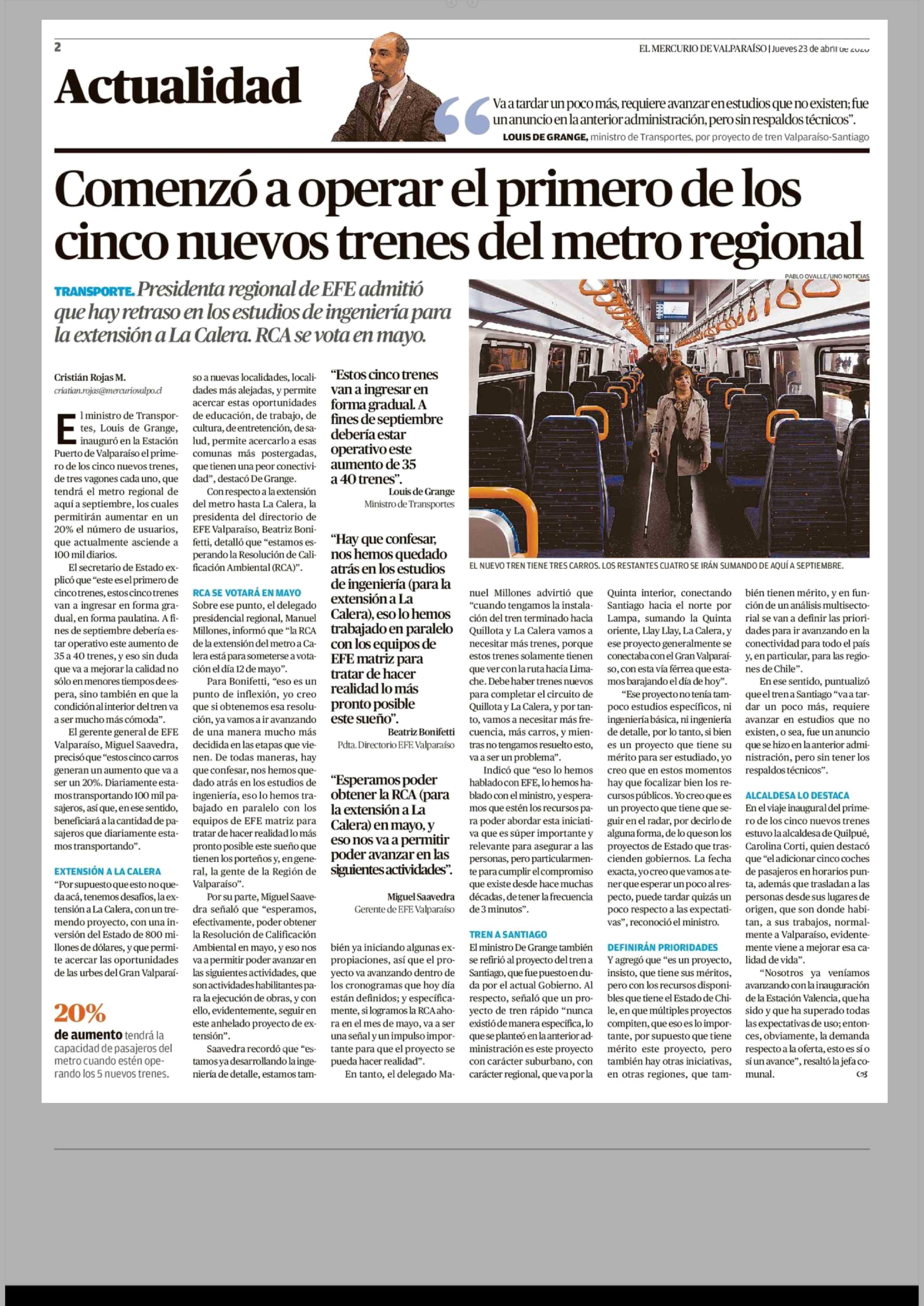 Título: Comenzó a operar el primero de los cinco nuevos trenes del metro regional