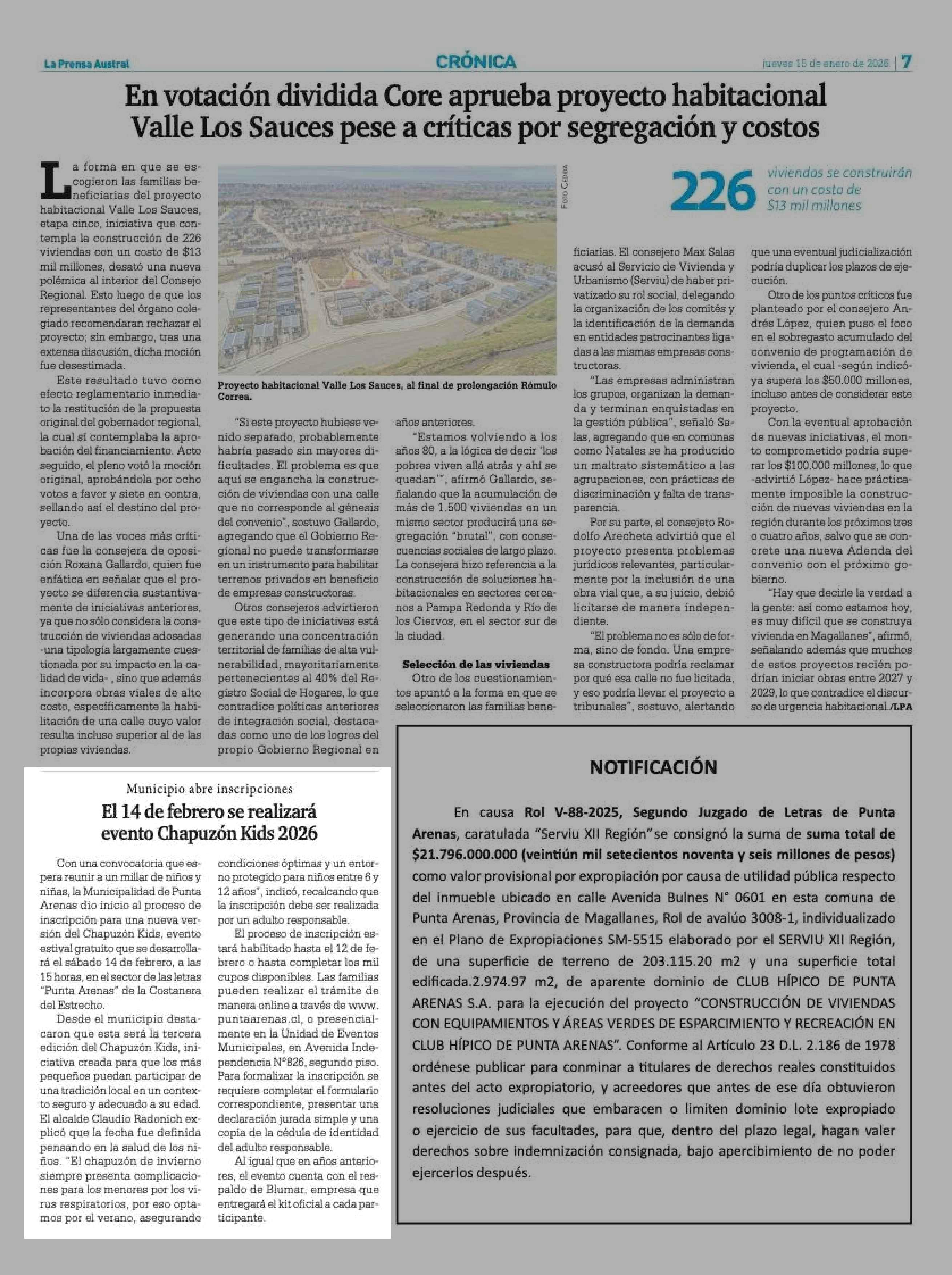 El 14 de febrero se realizará evento Chapuzón Kids 2026 15-01-2026 La Prensa Austral |