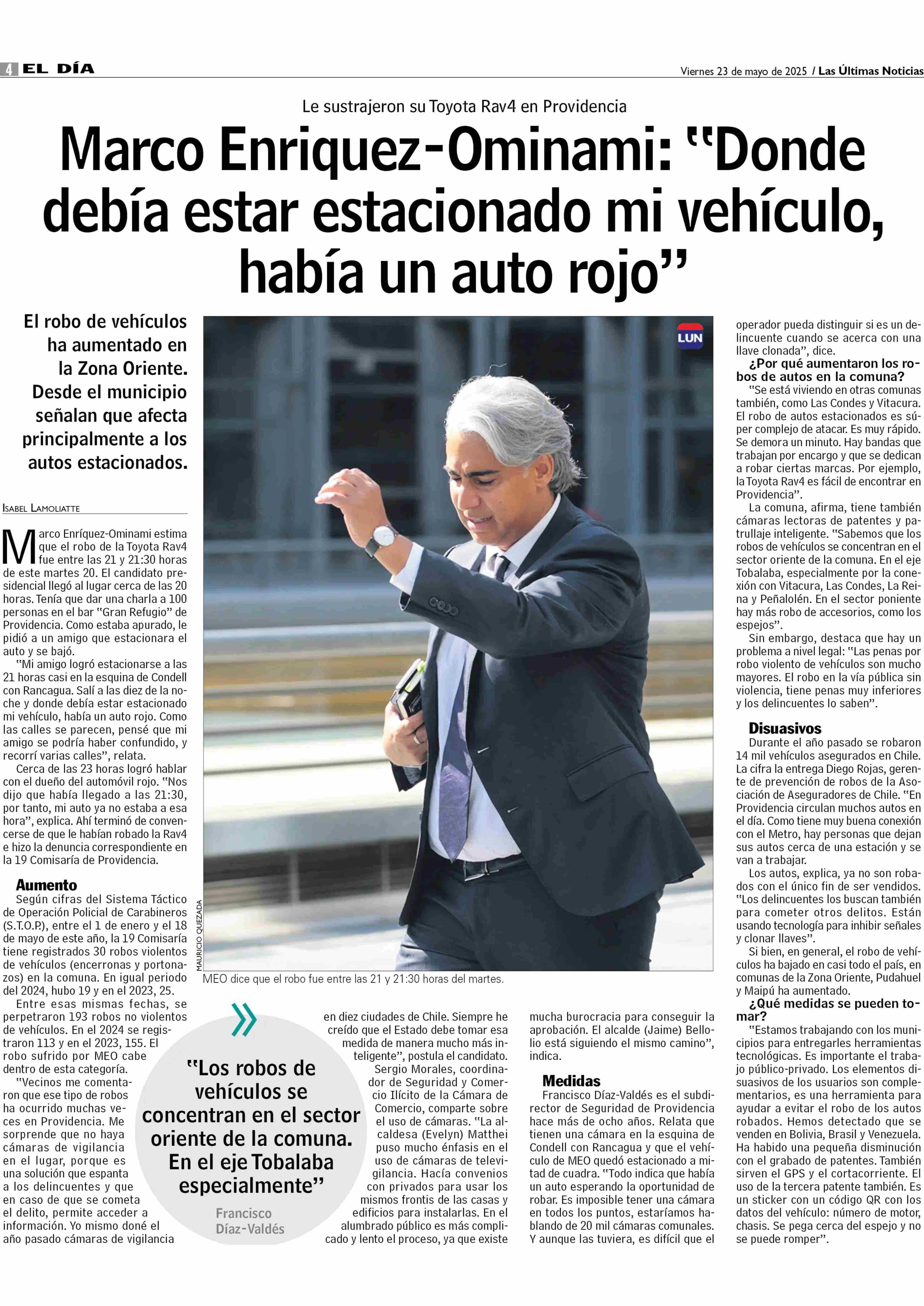 Marco Enriquez-Ominami: “Donde debía estar estacionado mi vehículo, habia un auto rojo” 23-05-2025 Las Últimas Noticias |