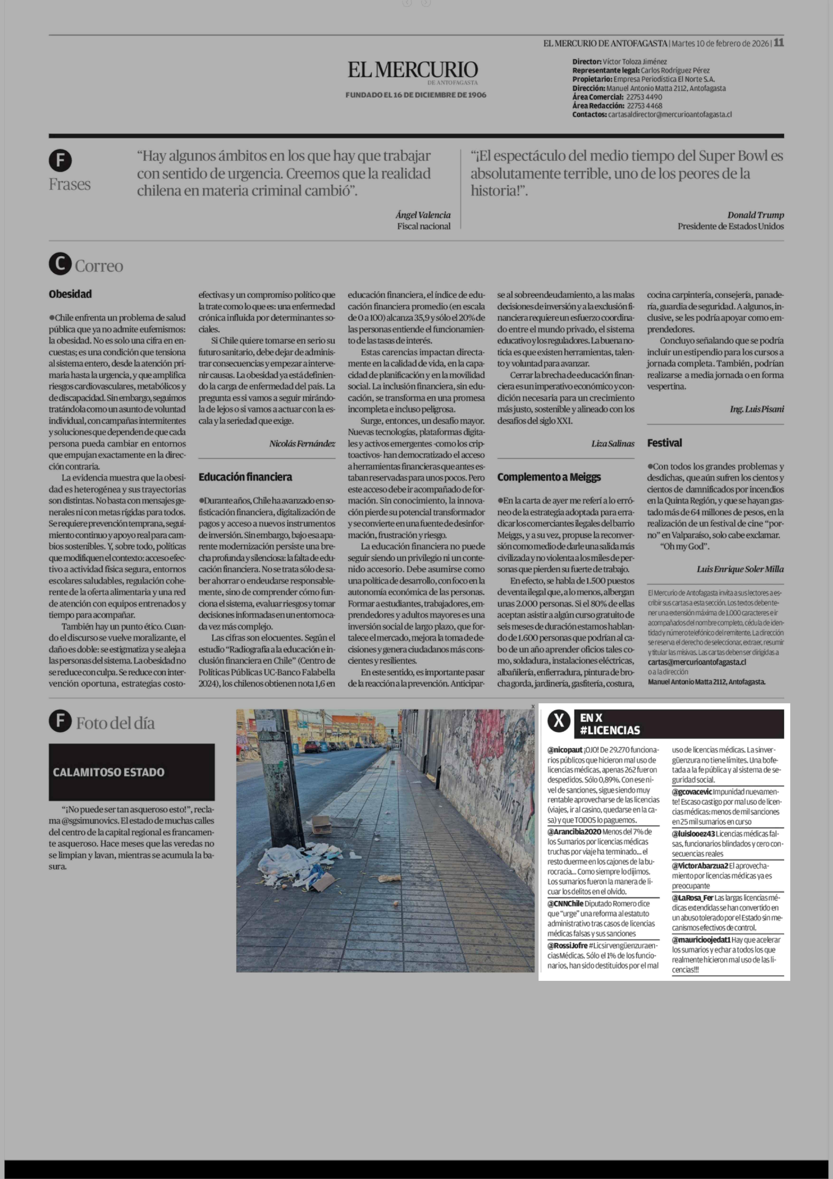 EN X #LICENCIAS 10-02-2026 El Mercurio de Antofagasta |
