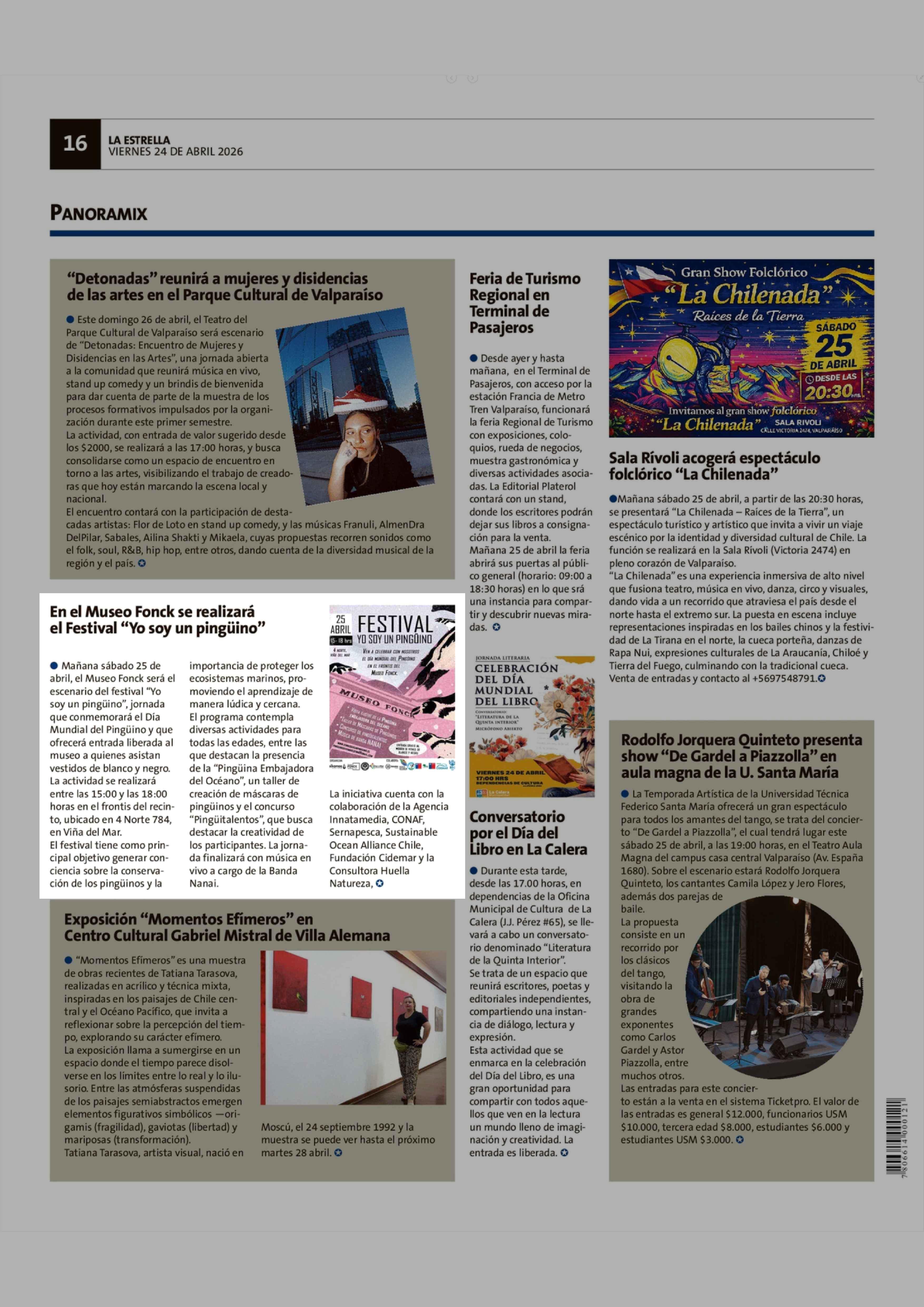 En el Museo Fonck se realizará el Festival "Yo soy un pingüino" 24-04-2026 La Estrella de Valparaíso |