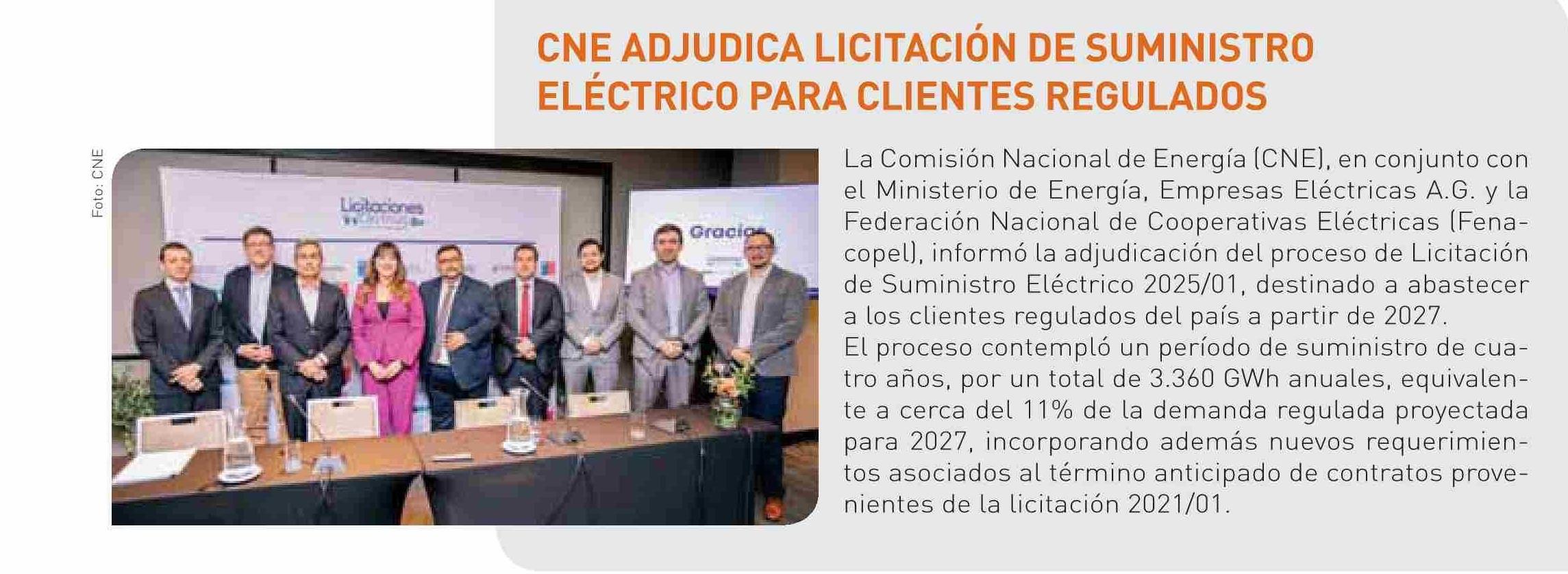 CNE ADJUDICA LICITACIÓN DE SUMINISTRO ELÉCTRICO PARA CLIENTES REGULADOS 12-01-2026 Revista Nueva Minería & Energía |