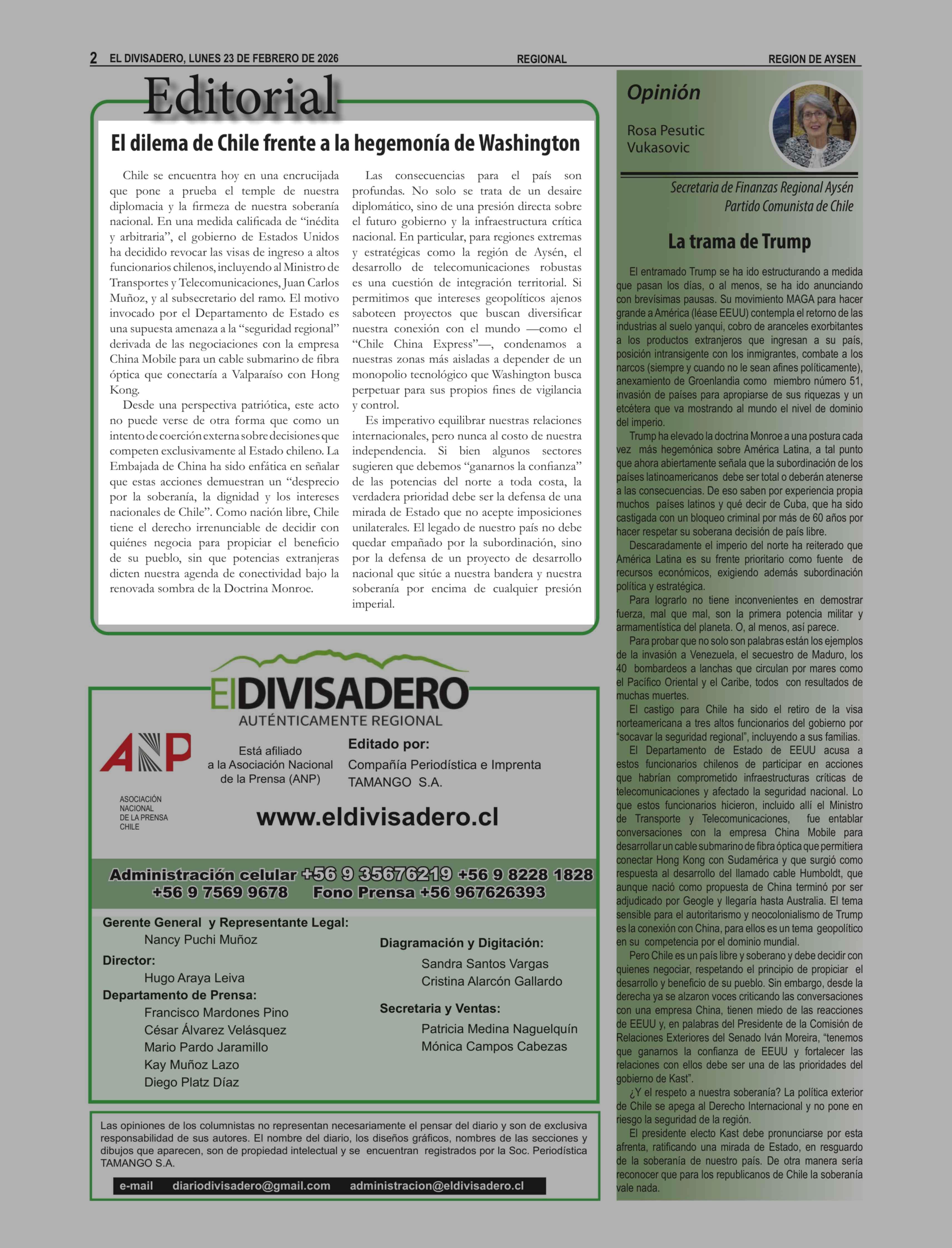 Fecha: 23-02-2026 Sector: Editorial Región: Región Aysén del General Carlos Ibáñez del Campo