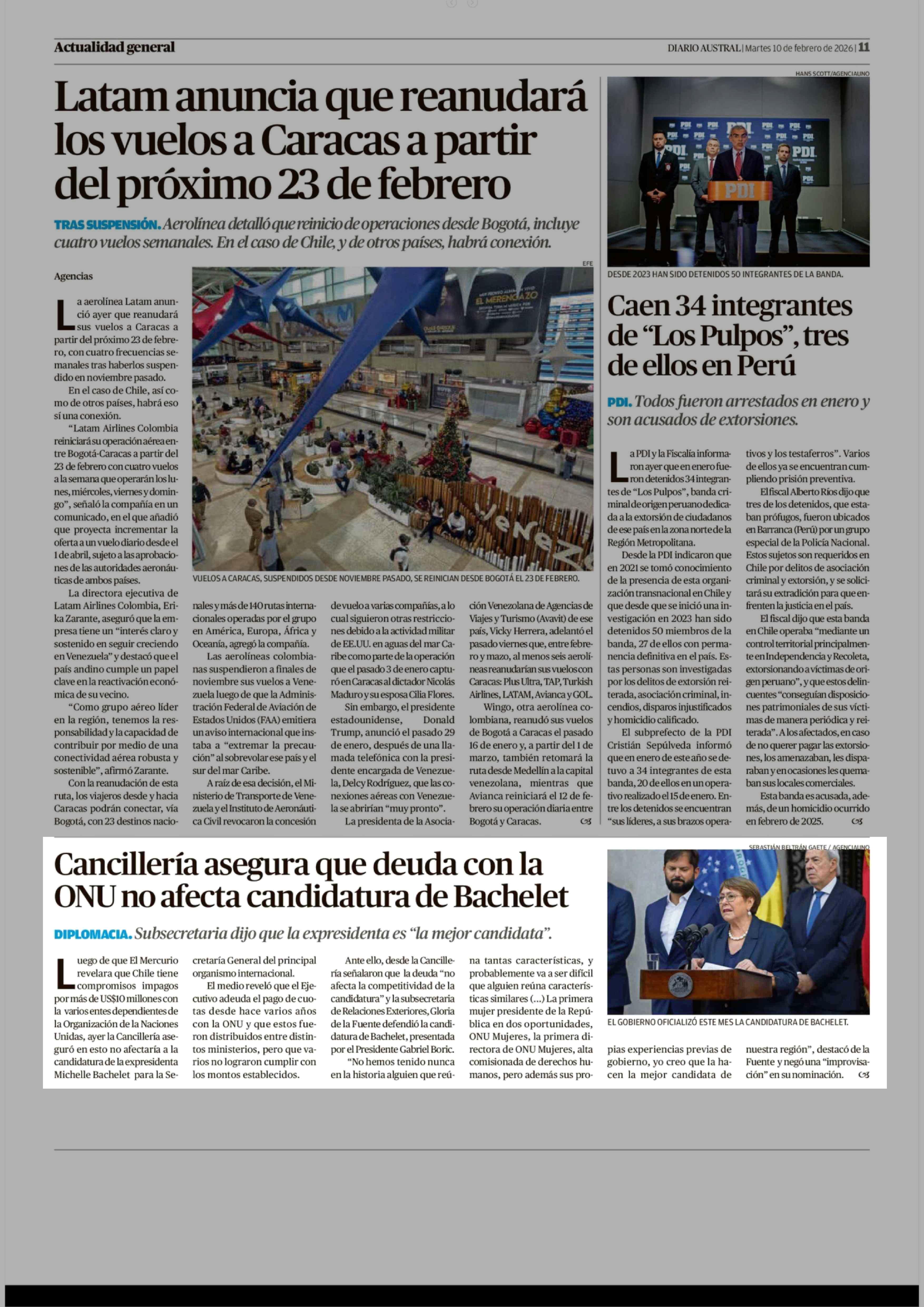 Cancillería asegura que deuda con la ONU no afecta candidatura de Bachelet 10-02-2026 Diario Austral Región de Los Ríos |