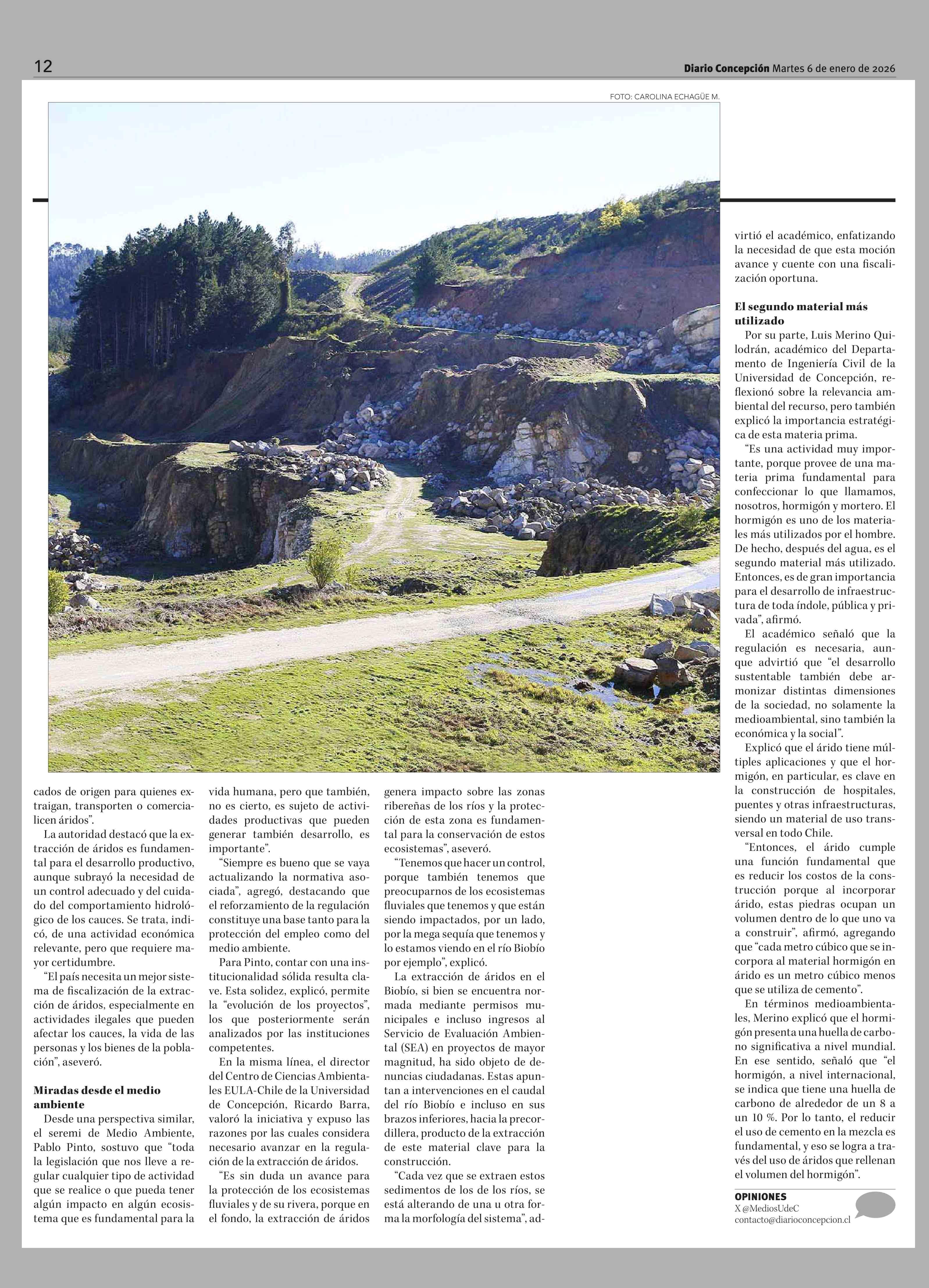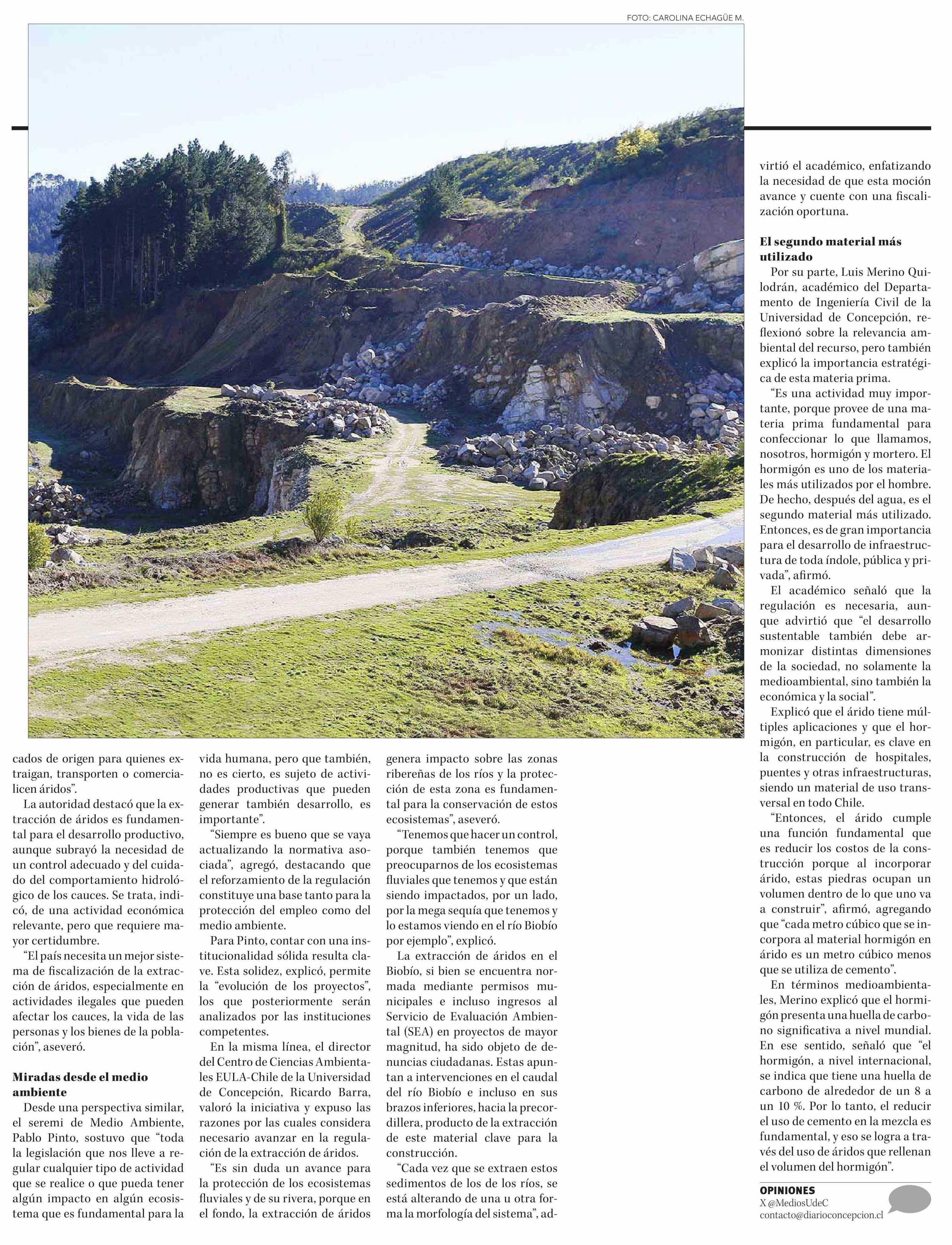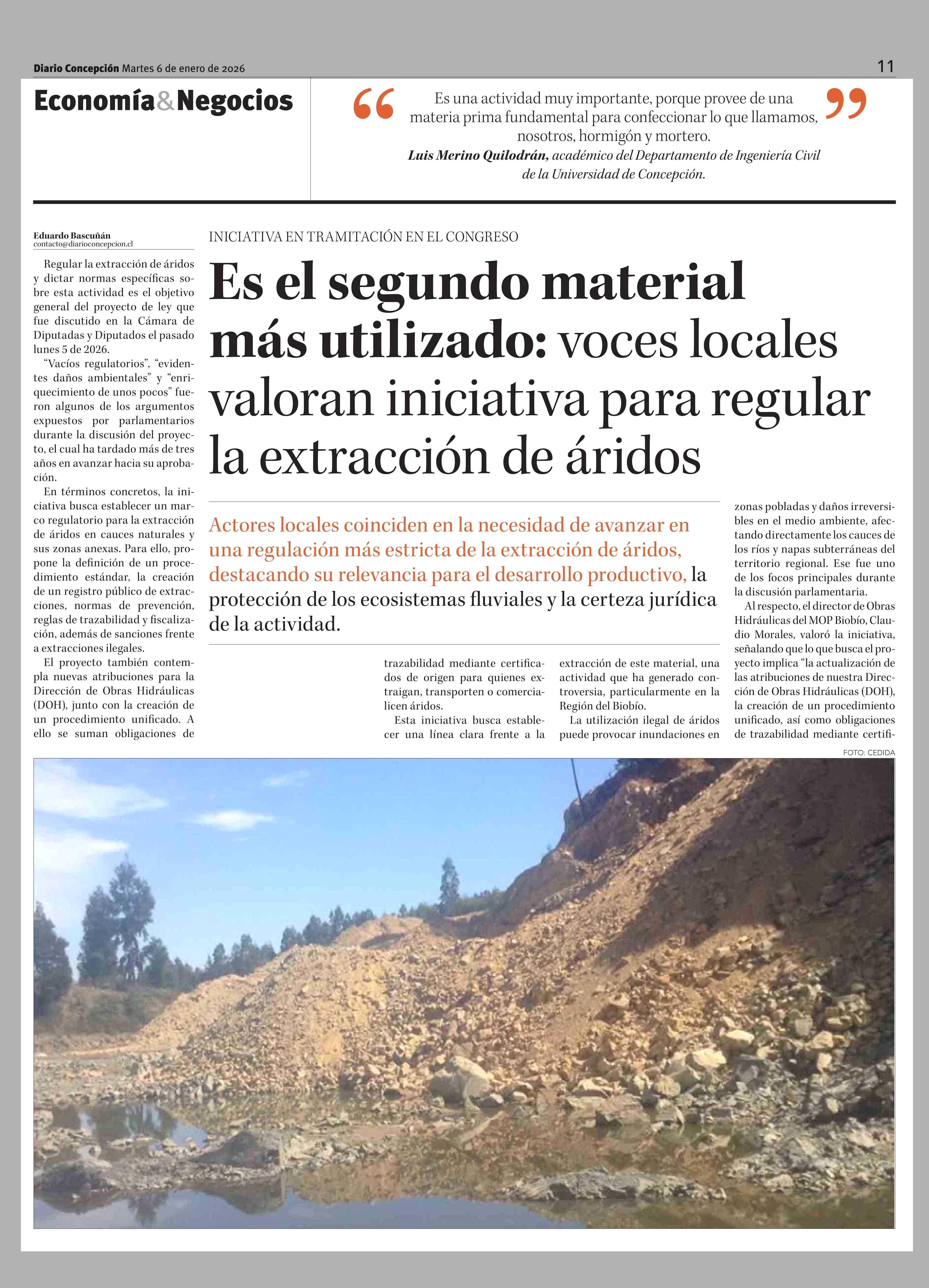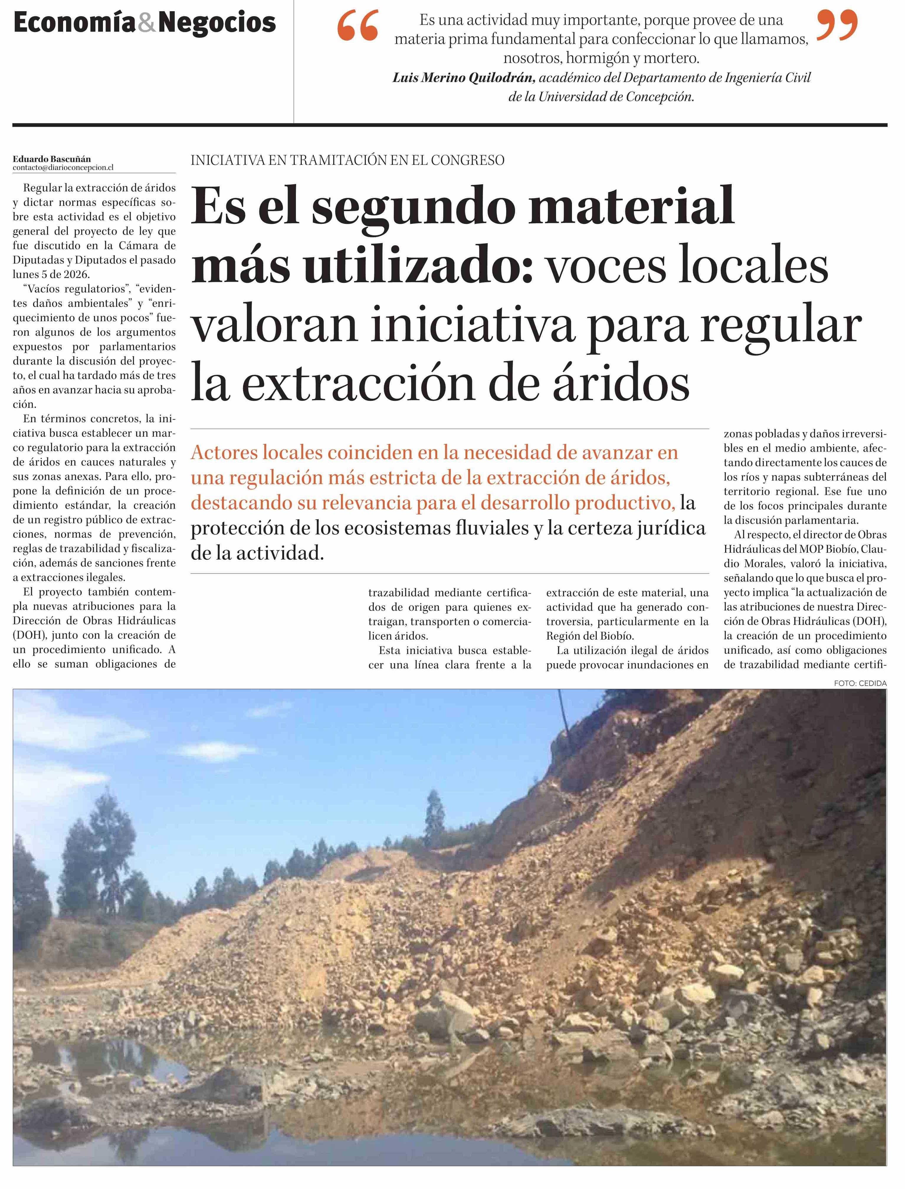 Es el segundo material más utilizado: voces locales valoran iniciativa para regular la extracción de áridos 06-01-2026 Diario Concepción |