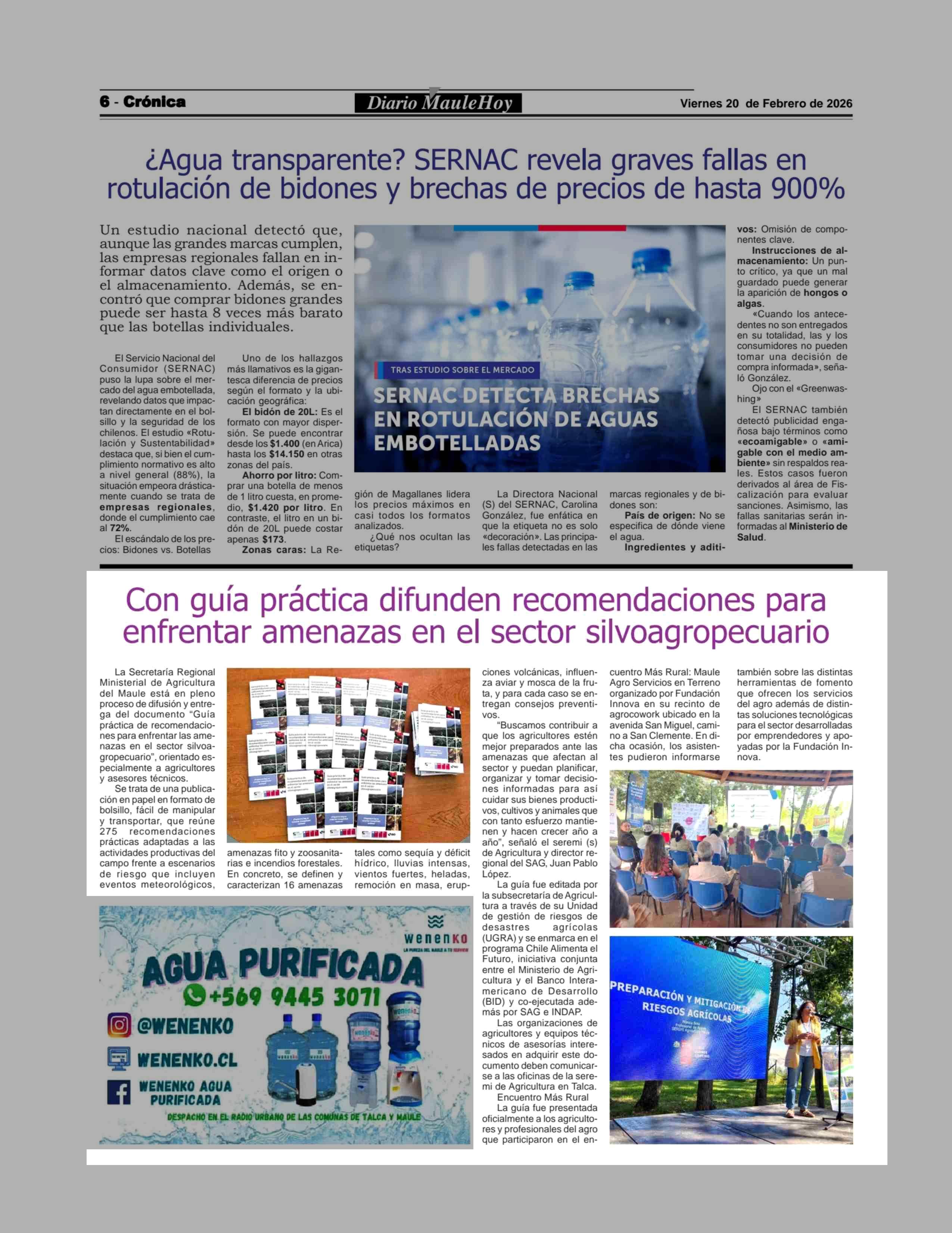 Con guía práctica difunden recomendaciones para enfrentar amenazas en el sector silvoagropecuario 20-02-2026 Maule Hoy |