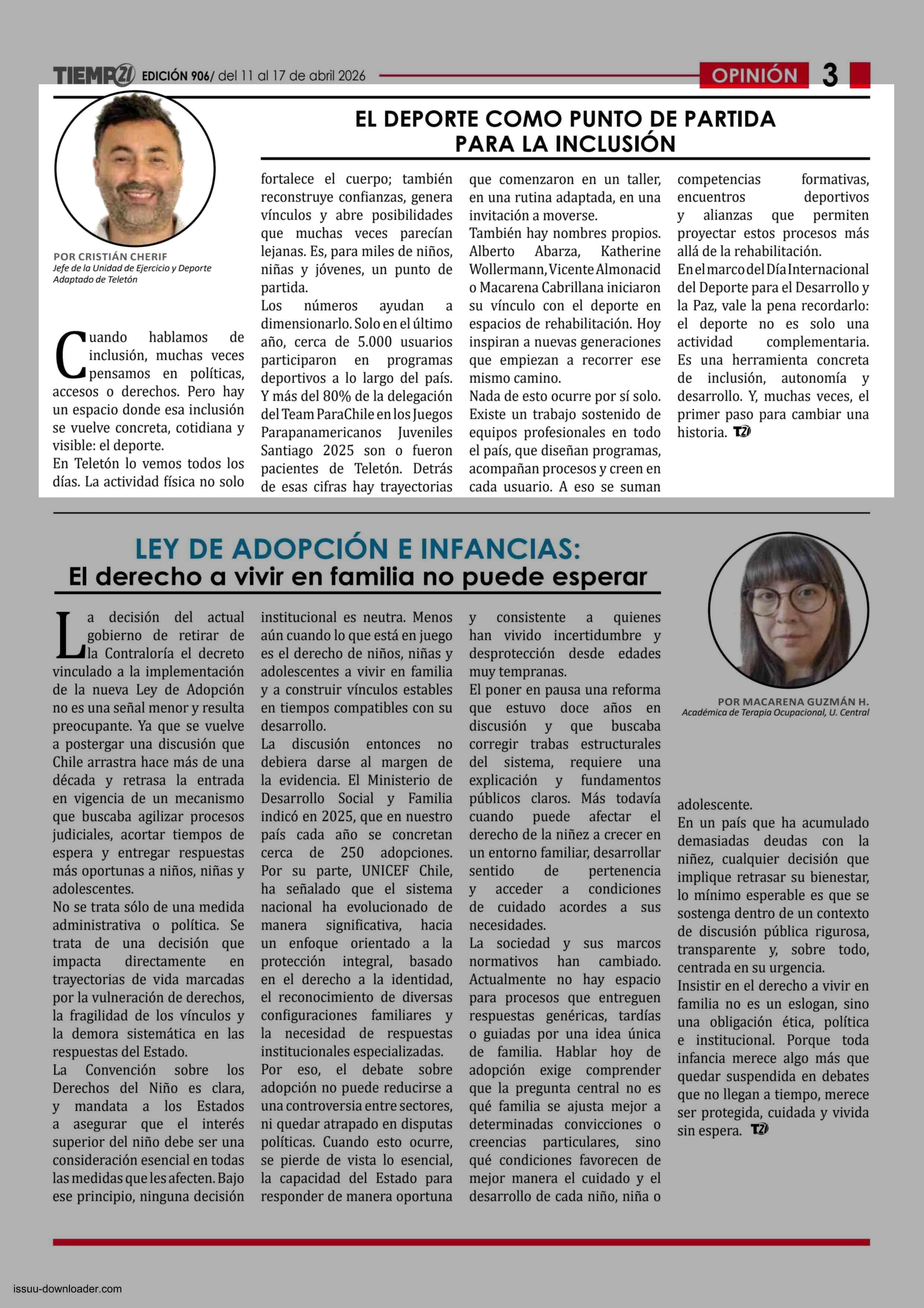 COLUMNAS DE OPINIÓN: TIEMR DEPORTE COMO PUNTO DE PARTIDA PARA LA INCLUSIÓN 11-04-2026 Tiempo 21 |
