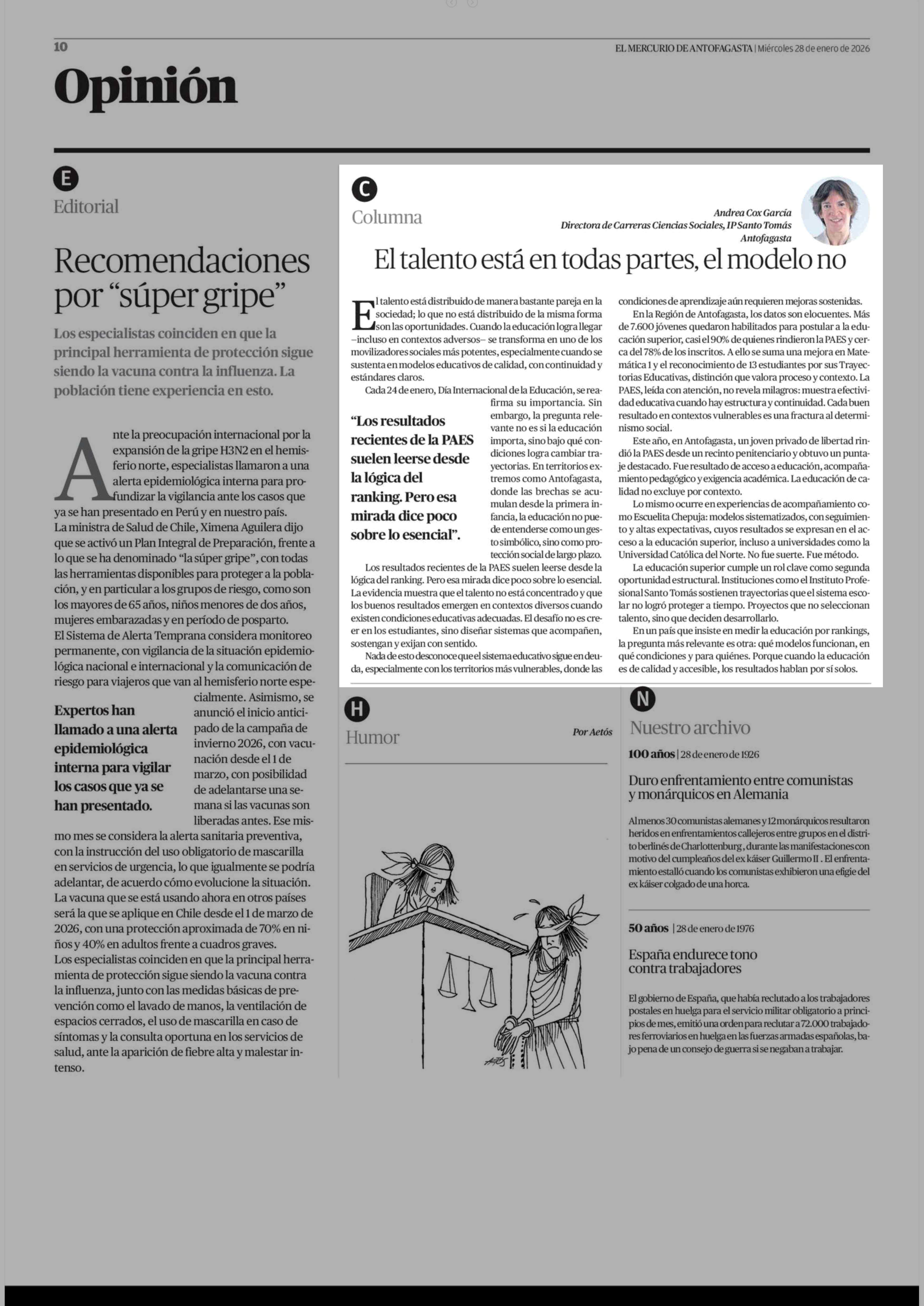 Columnas de Opinión: El talento está en todas partes, el modelo no 28-01-2026 El Mercurio de Antofagasta |