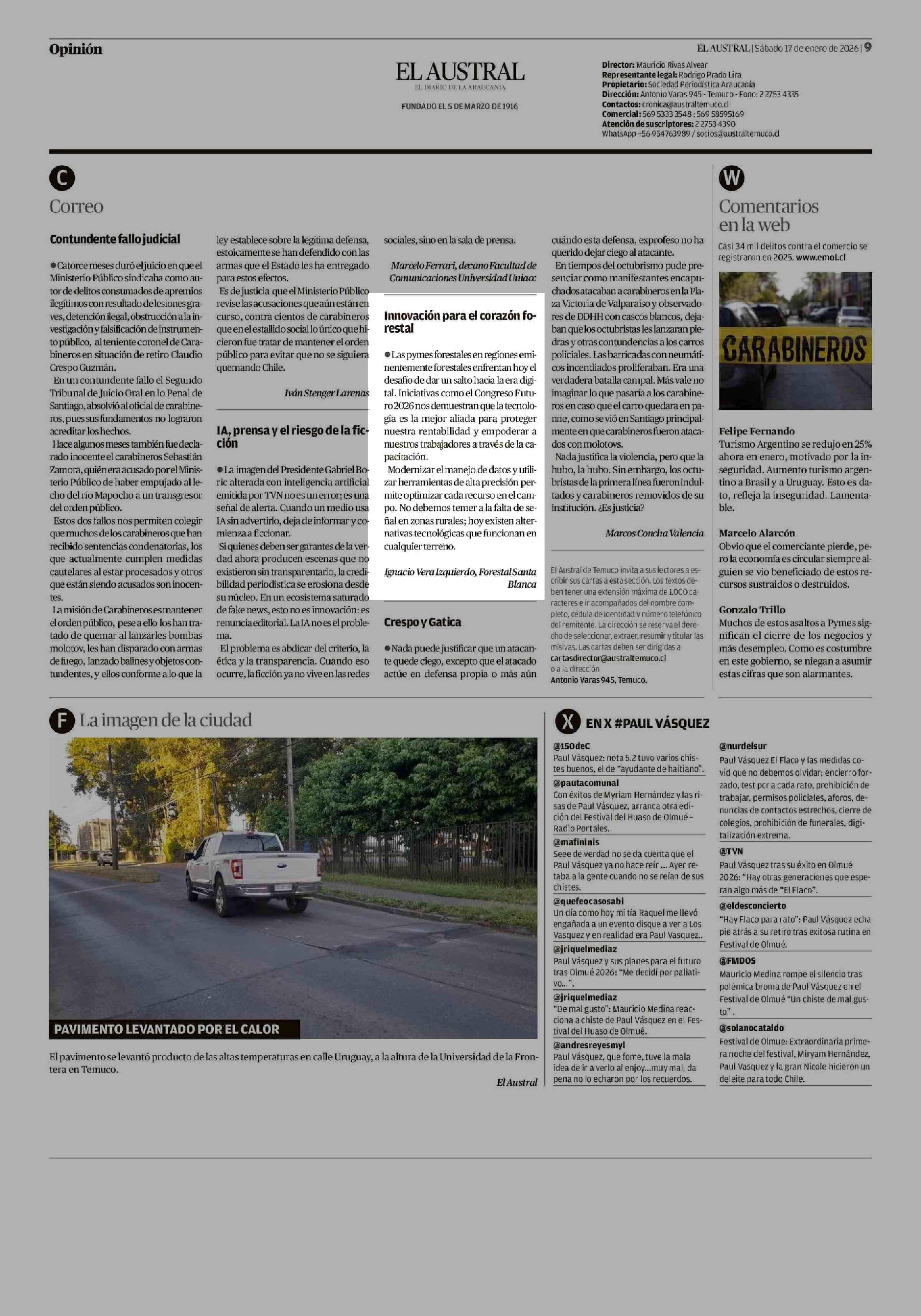 Cartas: Innovación para el corazón forestal 17-01-2026 El Austral de la Araucanía |