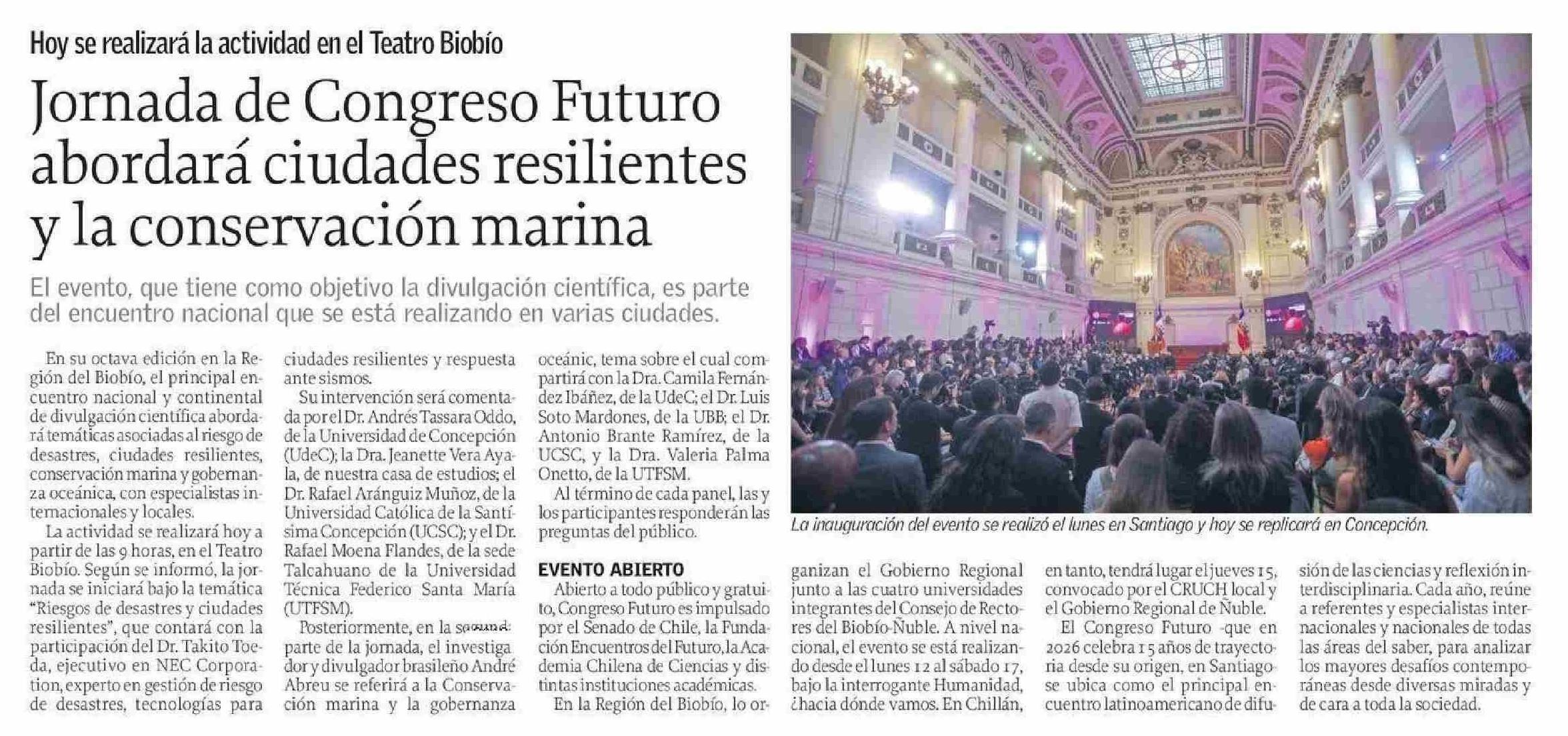 Título: Jornada de Congreso Futuro abordará ciudades resilientes y la conservación marina