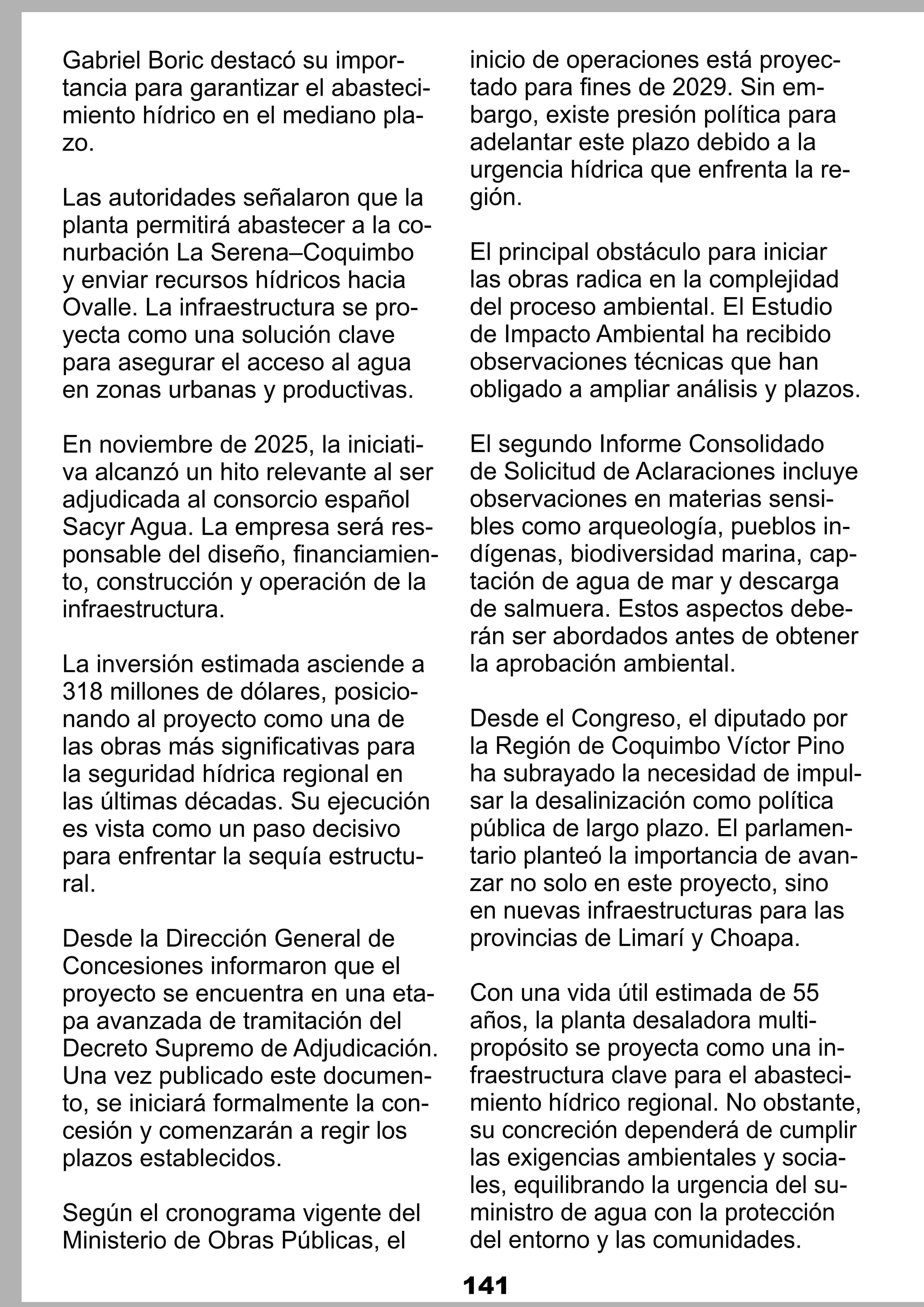 | Título: | Planta desaladora de Coquimbo enfrenta crítica evaluación ambiental sin inicio de obras |