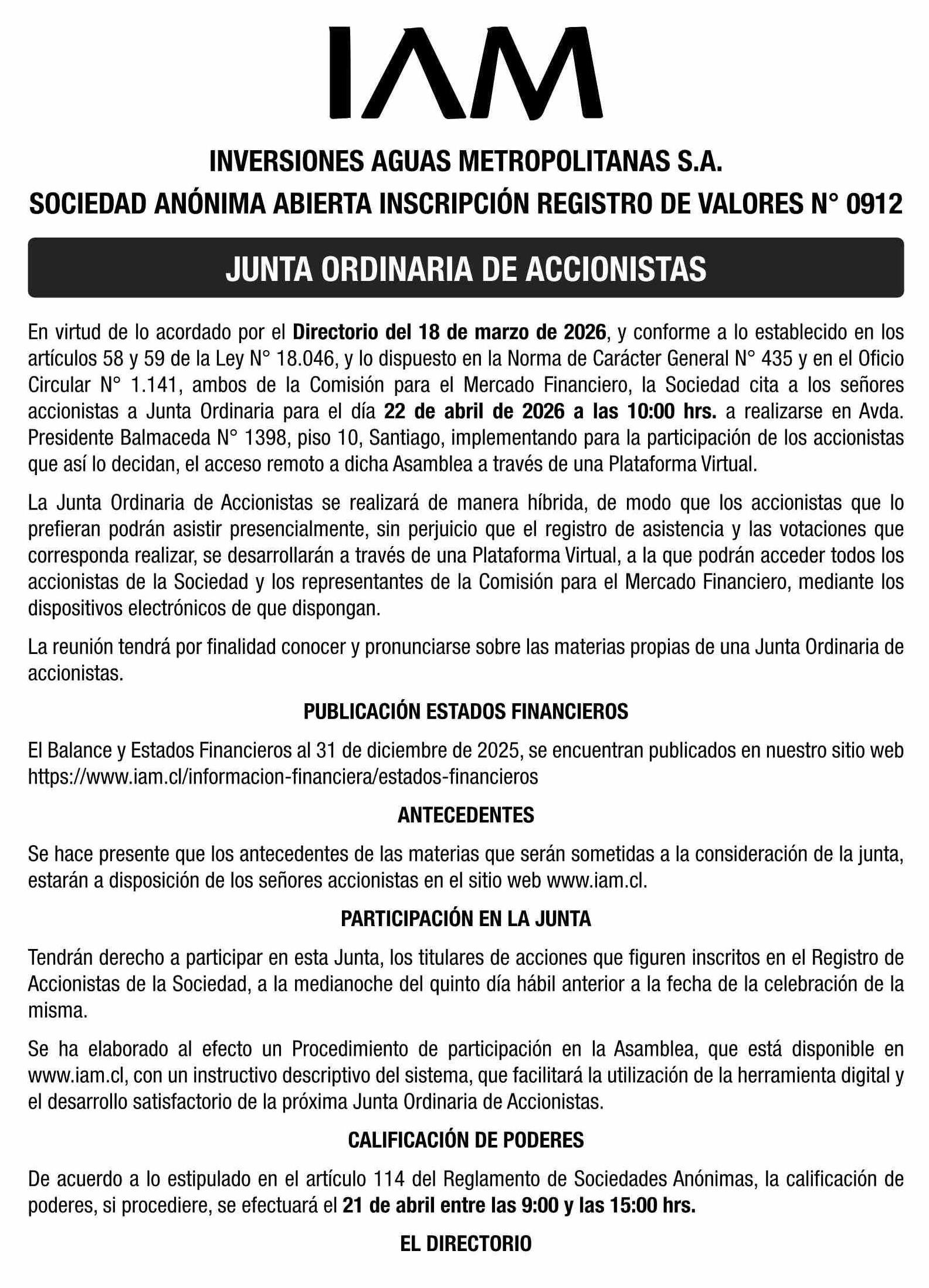 Título: INVERSIONES AGUAS METROPOLITANAS S.A.