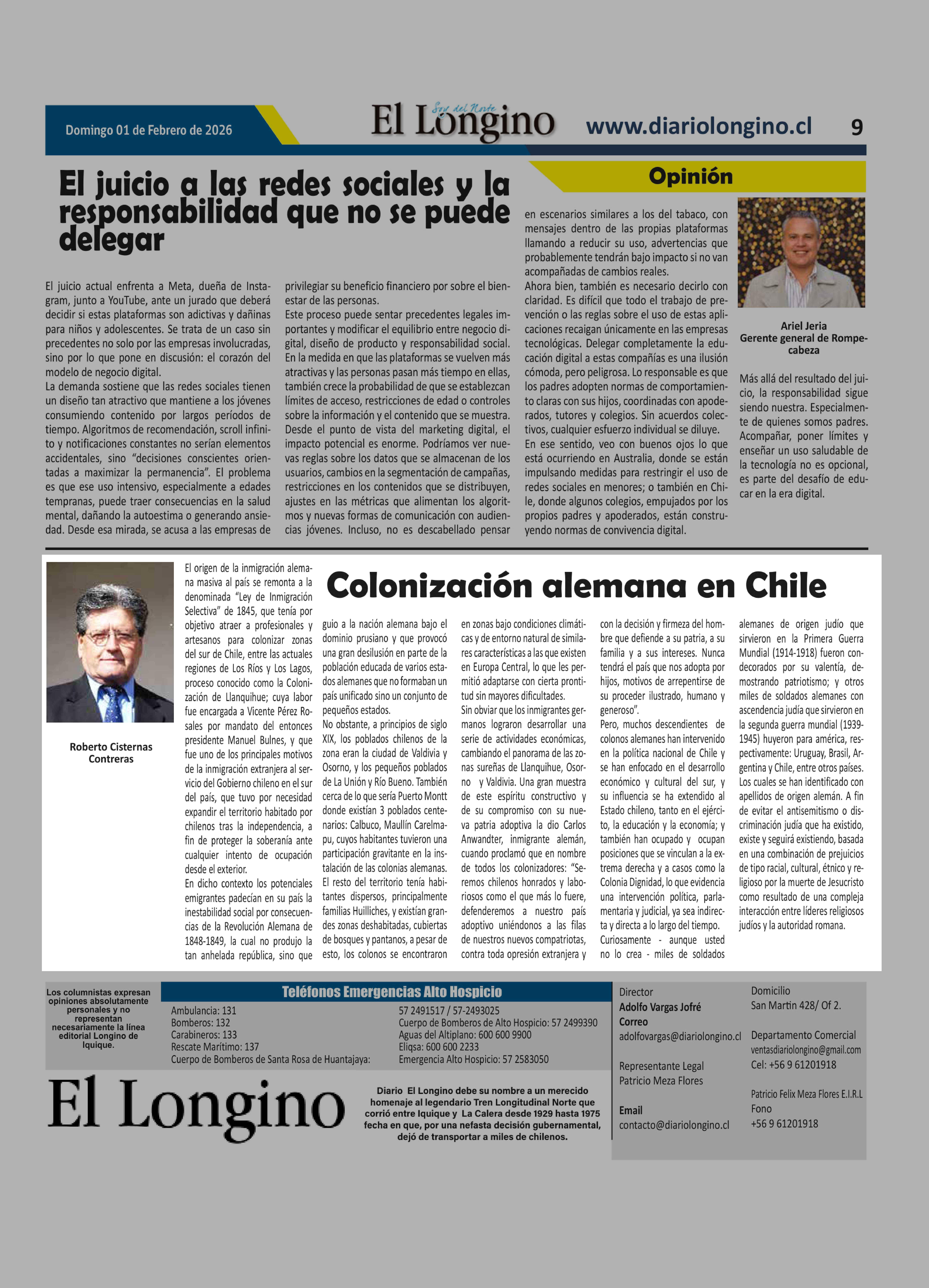 Columnas de Opinión: Colonización alemana en Chile 01-02-2026 El Longino |