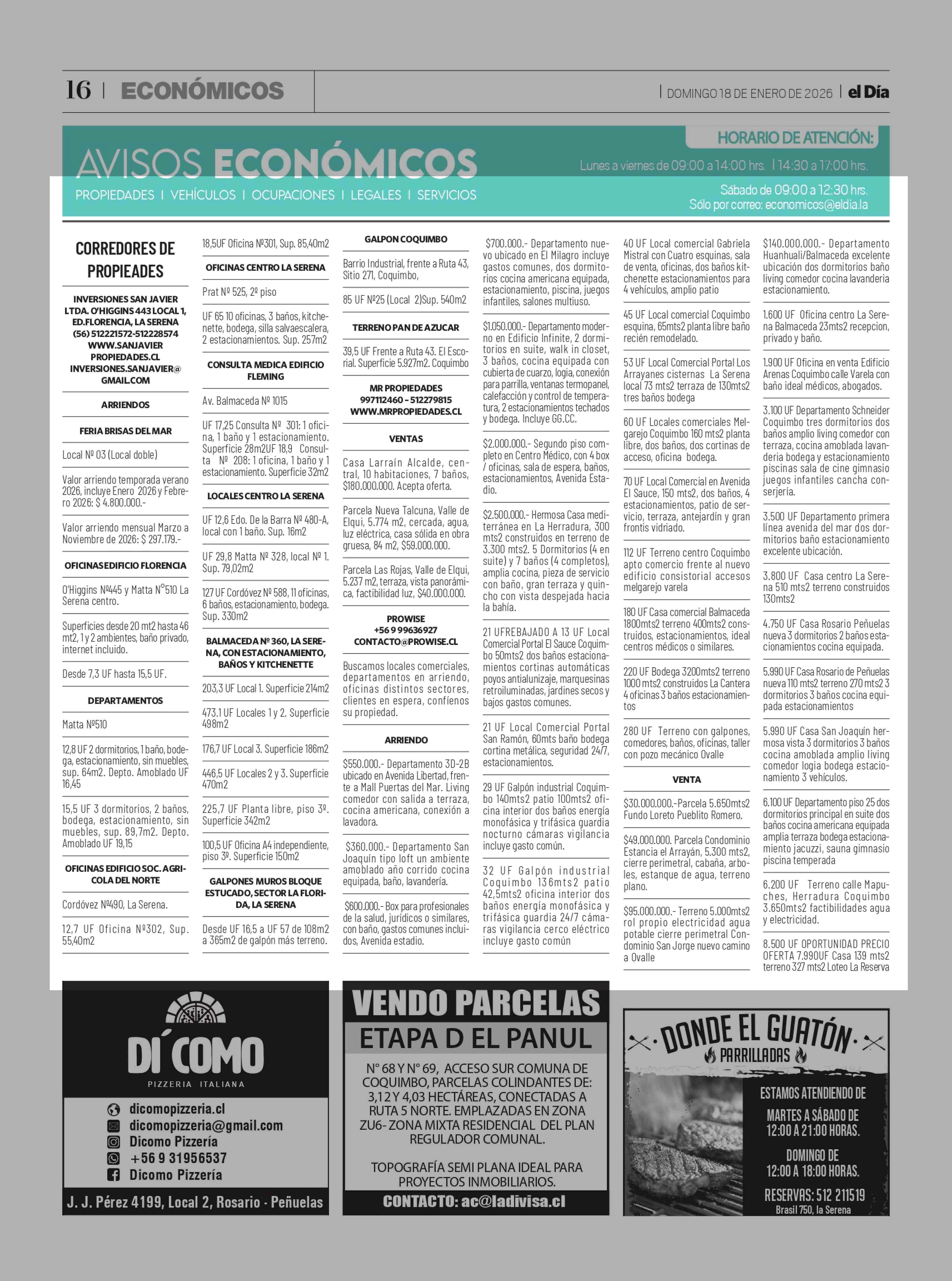 Valor arriendo mensual Marzo a Noviembre de 2026: $ 297.179 .- 18-01-2026 El Día |