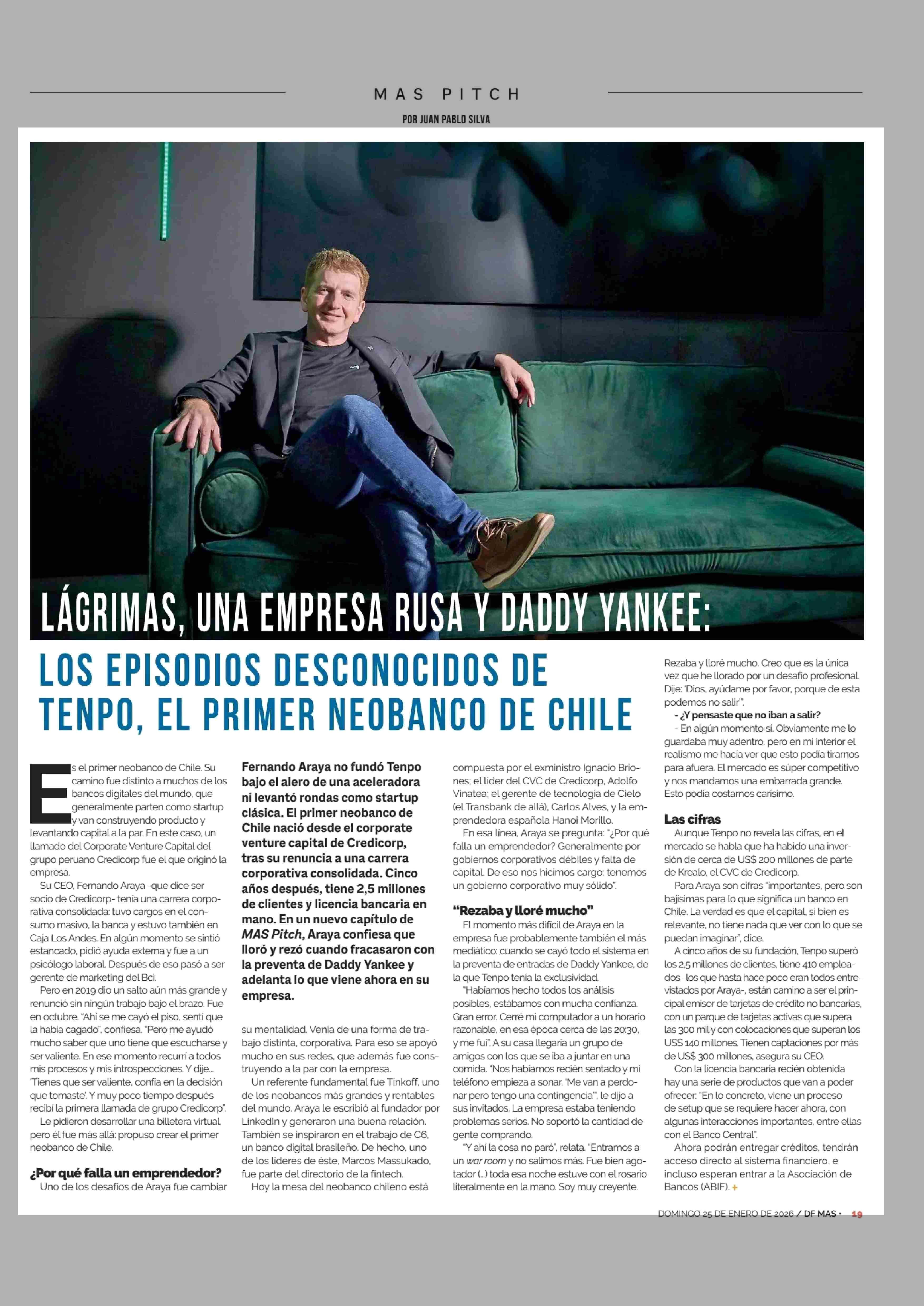LÁGRIMAS, UNA EMPRESA RUSA Y DADDY YANKEE: LOS EPISODIOS DESCONOCIDOS DE TENPO, EL PRIMER NEOBANCO DE CHILE 25-01-2026 Diario Financiero |