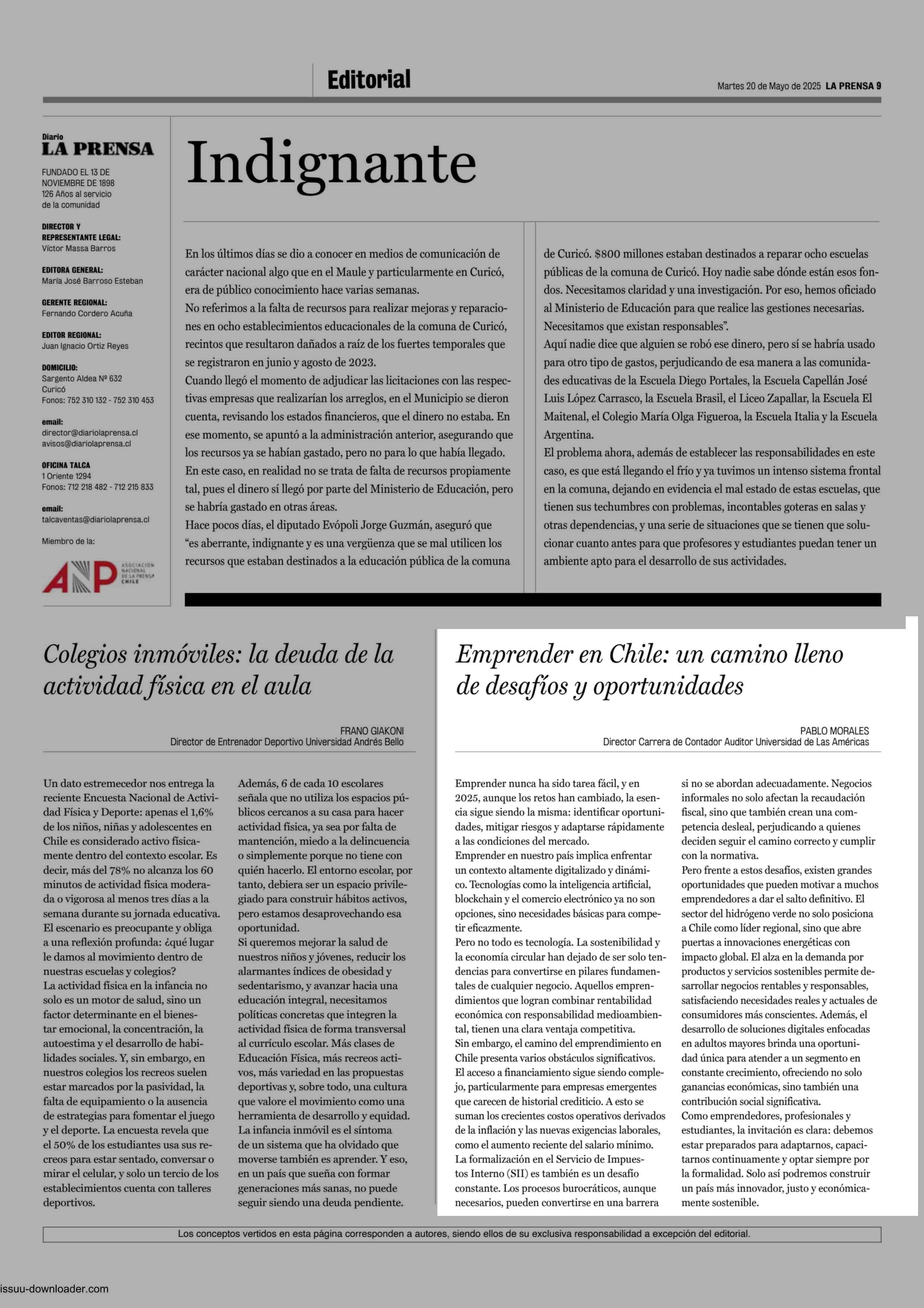 CARTAS: Emprender en Chile: un camino lleno de desafíos y oportunidades 20-05-2025 La Prensa de Curicó |