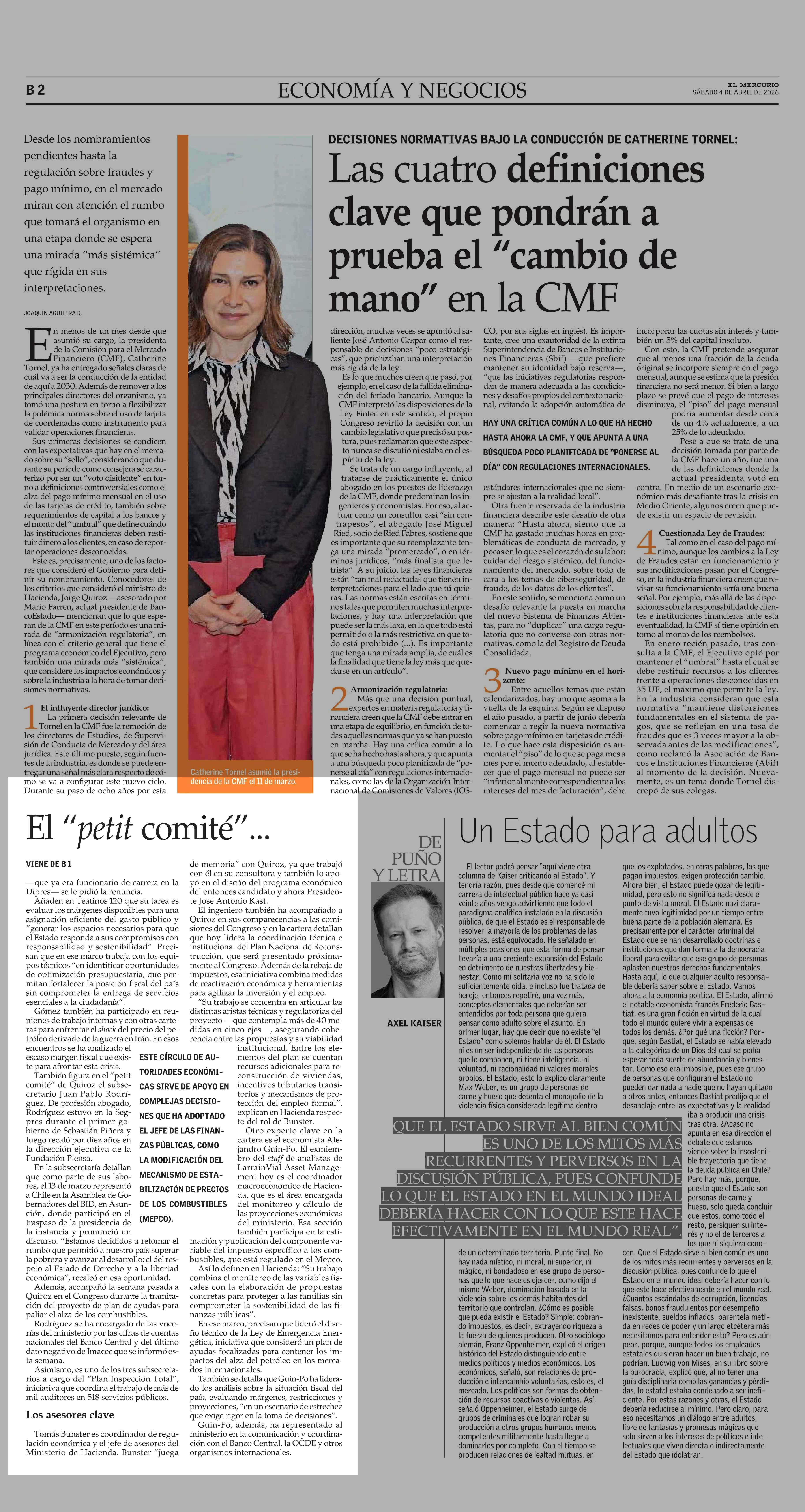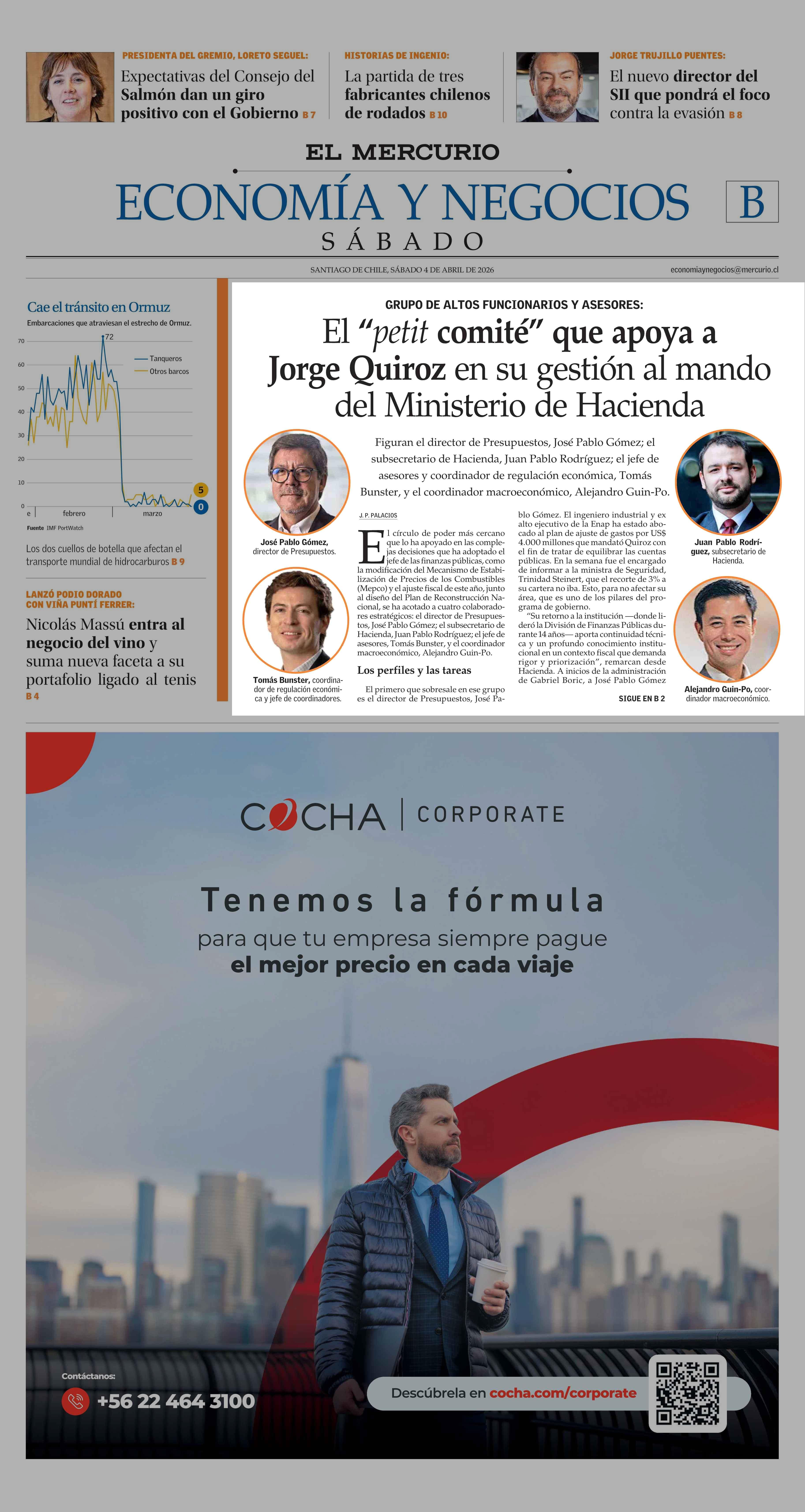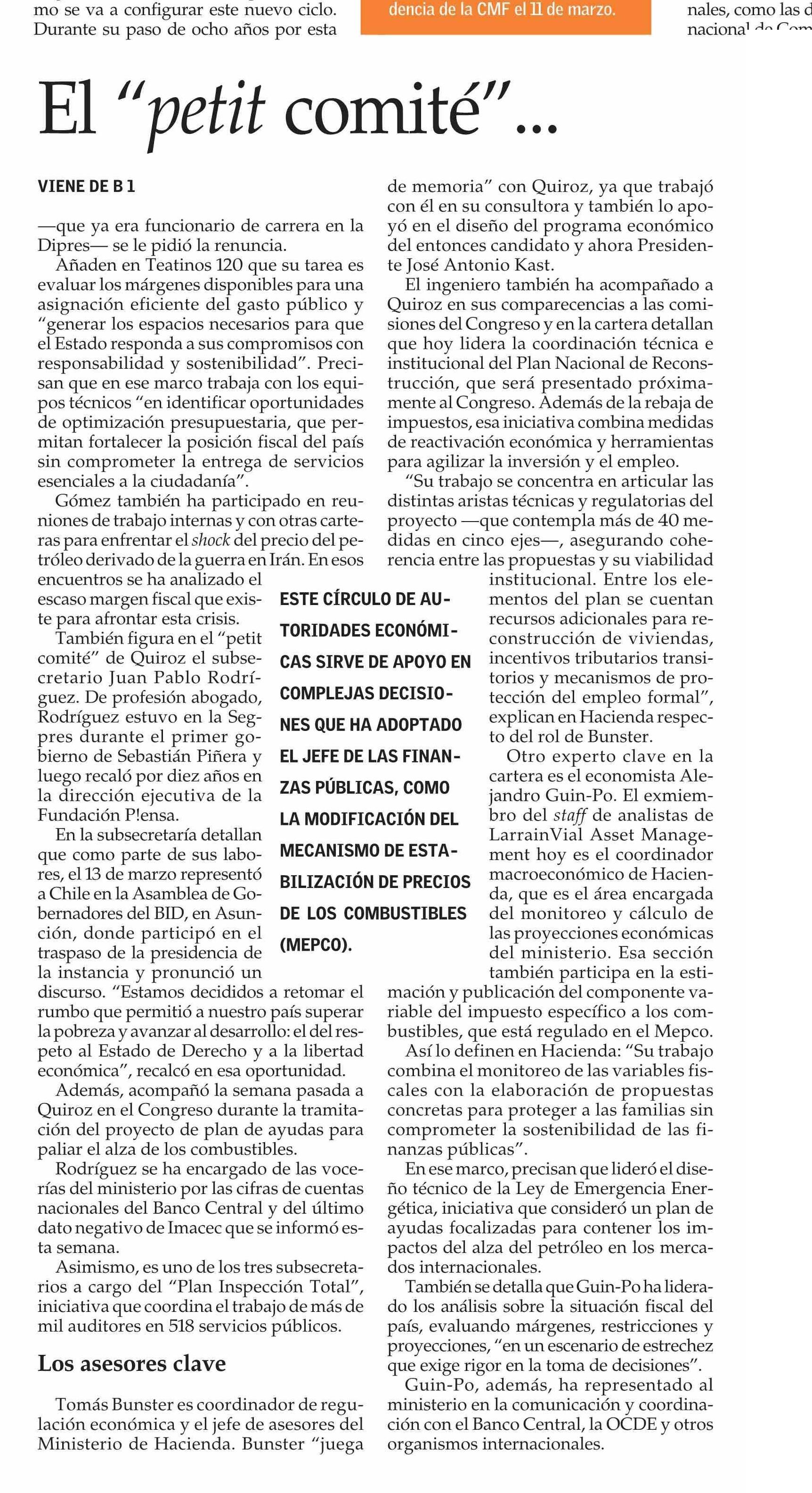 El “petit comité” que apoya a Jorge Quiroz en su gestión al mando del Ministerio de Hacienda 04-04-2026 El Mercurio |