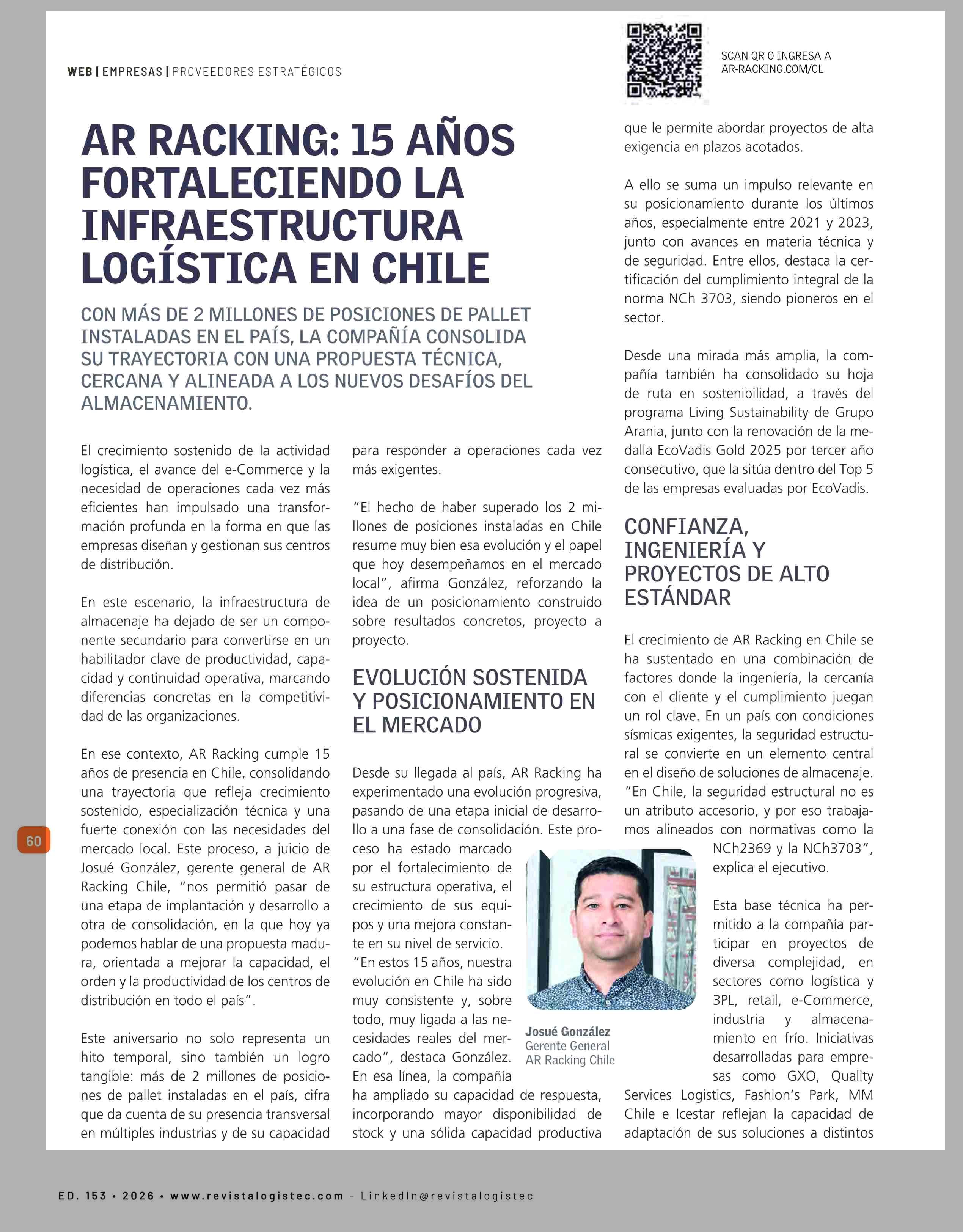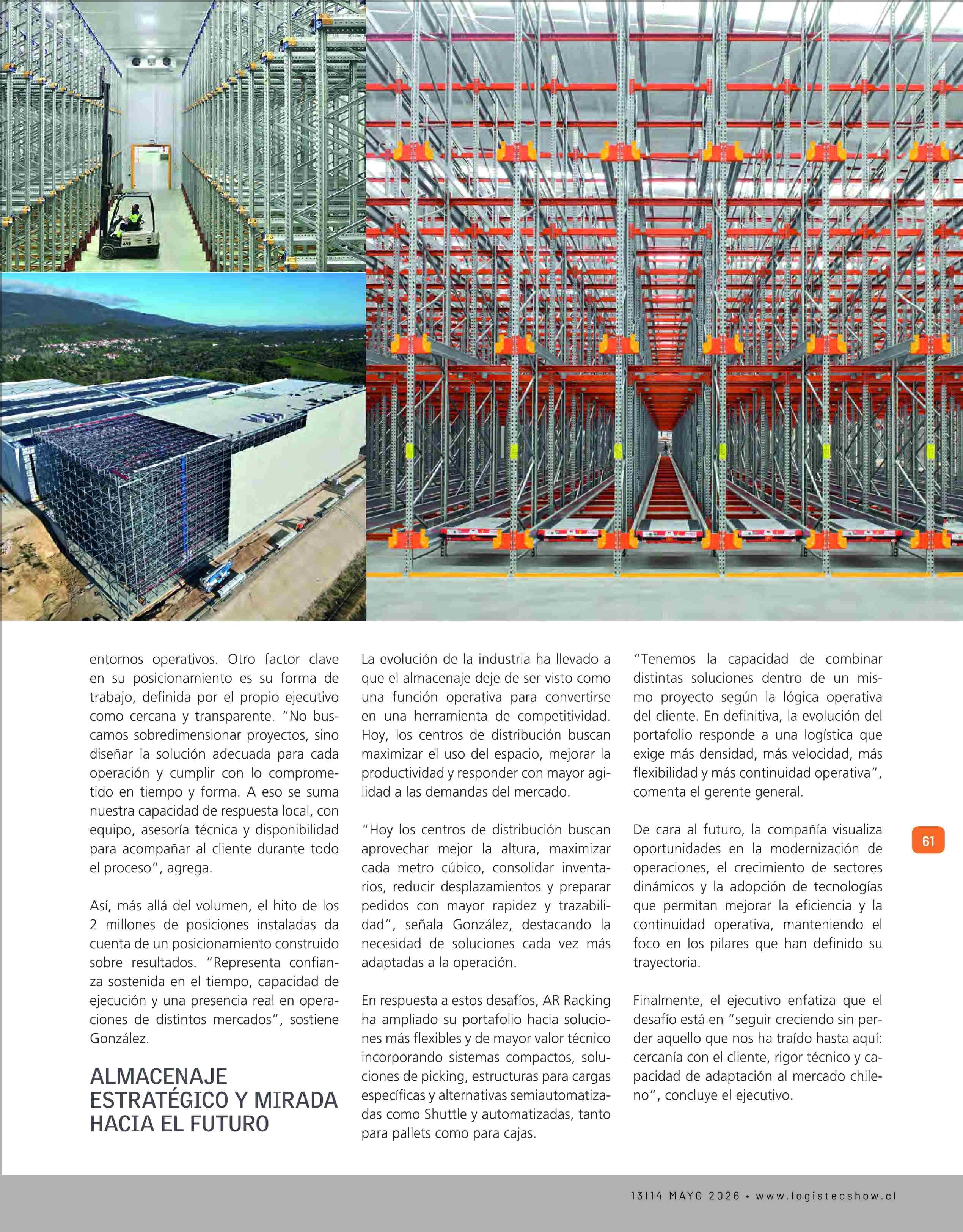 AR RACKING: 15 ANOS FORTALECIENDO LA INFRAESTRUCTURA LOGISTICA EN CHILE 23-04-2026 Revista Logistec |
