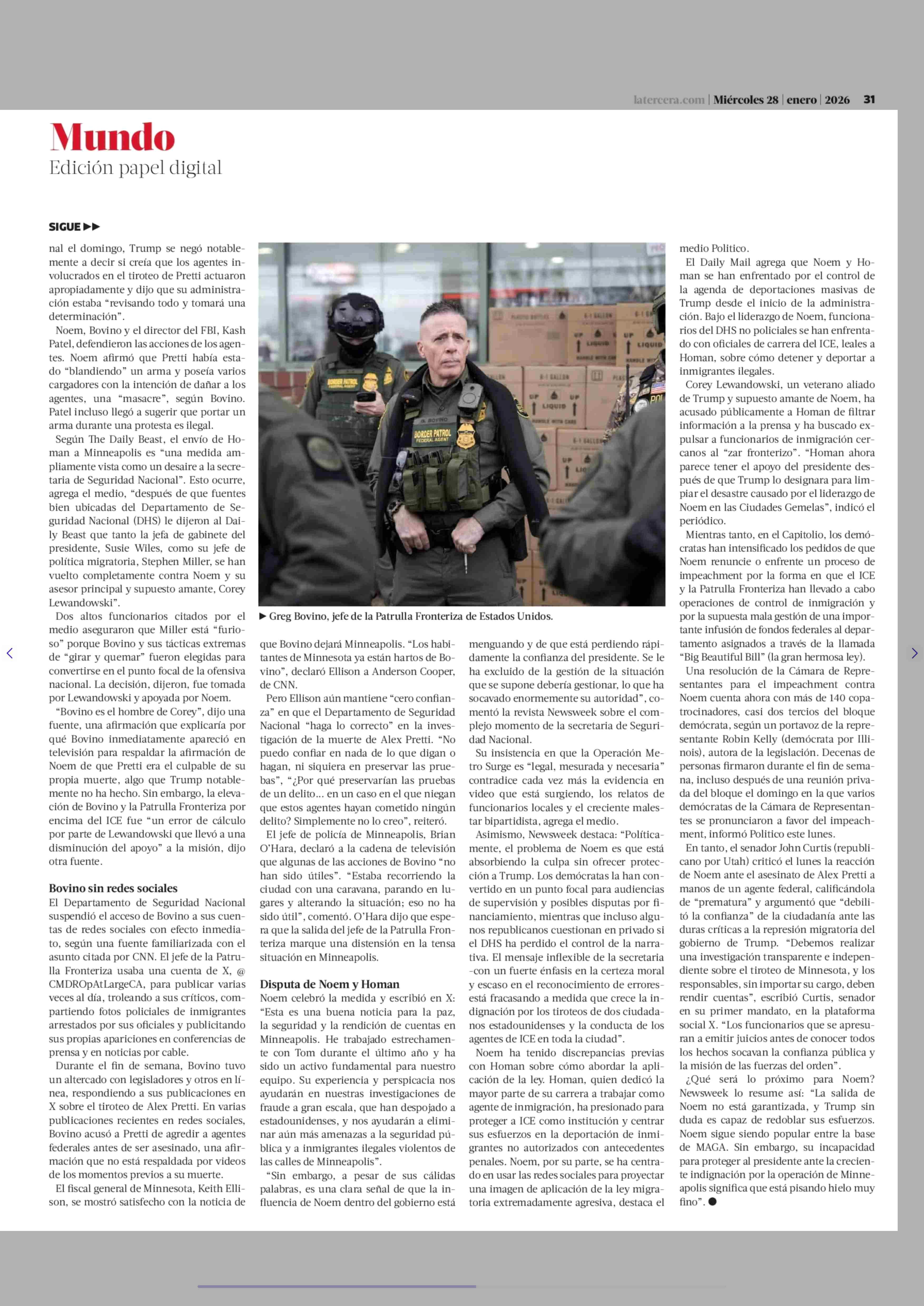 Título: Trump retira a jefe de Patrulla Fronteriza de Minneapolis en medio de crecientes críticas a secretaria de Seguridad Nacional